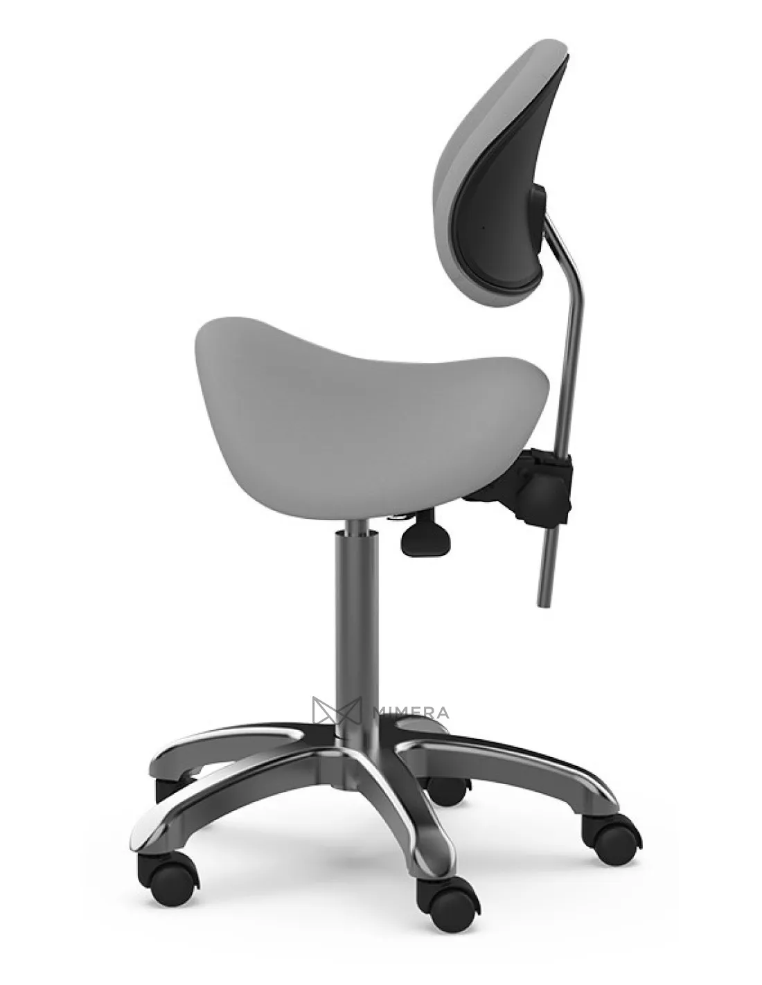 Kosmetikstuhl WISER ist eine elegante und ergonomische Lösung, die für maximalen Komfort und Funktionalität entwickelt wurde. Er verfügt über eine geformte Rückenlehne und einen Sattelsitz, die höchsten Arbeitskomfort bieten. Das Sitzen auf einem Sattelsitz fördert eine aufrechte Haltung, indem das Becken natürlich nach vorne gekippt wird. Dadurch wird die Wirbelsäule in einer neutralen Position gehalten und eine Überlastung der Muskeln vermieden, die sonst Anstrengungen zur Aufrechterhaltung der richtigen Haltung unternehmen müssten.