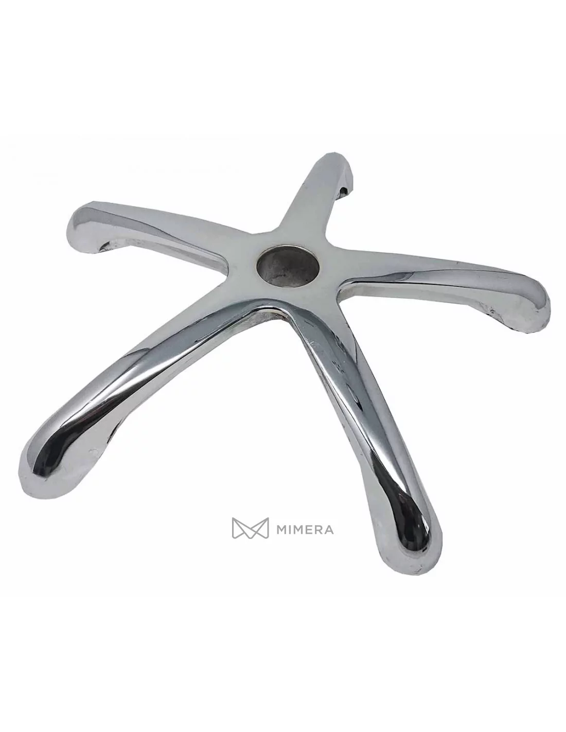 Chrombasis für Kosmetikstühle aus unserem Angebot. Die gesamte Basis hat einen Durchmesser von 48 cm und der Durchmesser des Lochs für den Stuhlkolben beträgt 5 cm.