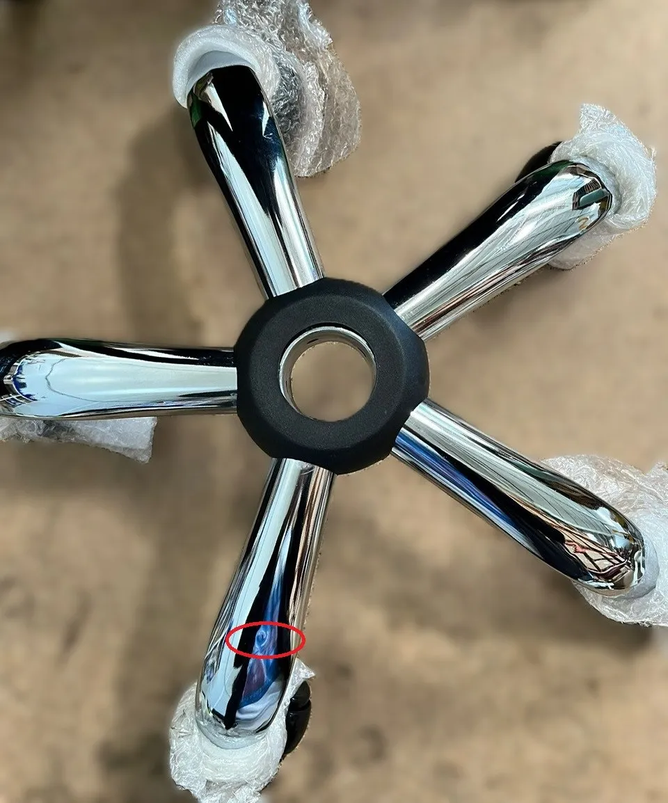 Poškození: drobné oděrky po obvodu židle, drobná poškození podstavce
