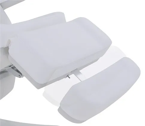 Das Fußteil ist elektrisch verstellbar und bietet zusätzlich eine manuelle Verlängerung, wodurch sich die Liege optimal an verschiedene Behandlungen und Körpergrößen anpassen lässt.