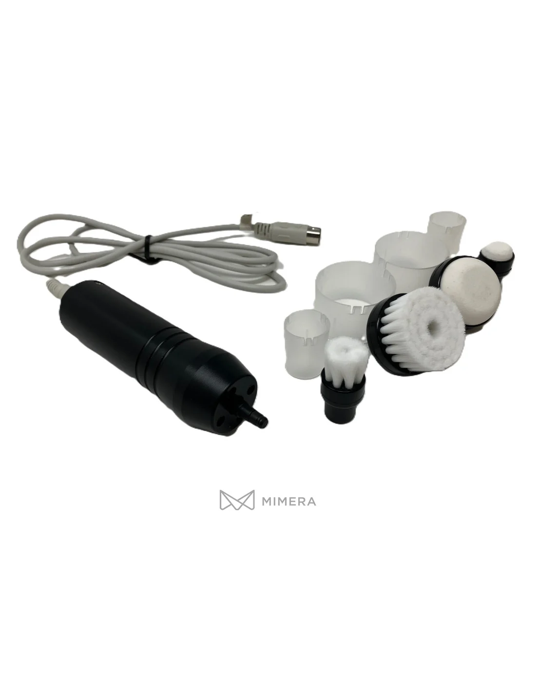 Ersatzgriff mit Bürsten für Peeling-Drehgerät F-315B, F-315A, F-830. Das Set enthält einen Kopf mit einem Kabel zum Befestigen der Bürste, zwei Bürsten mit synthetischen Borsten und zwei Bimssteinbürsten.