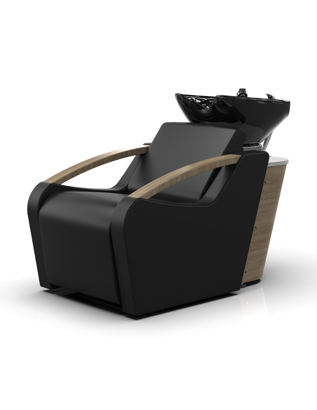 Elegante und moderne Waschanlage mit durchdachtem Design und hochwertigen Materialien, entwickelt für professionelle Friseursalons, die Wert auf Komfort und Ästhetik legen.