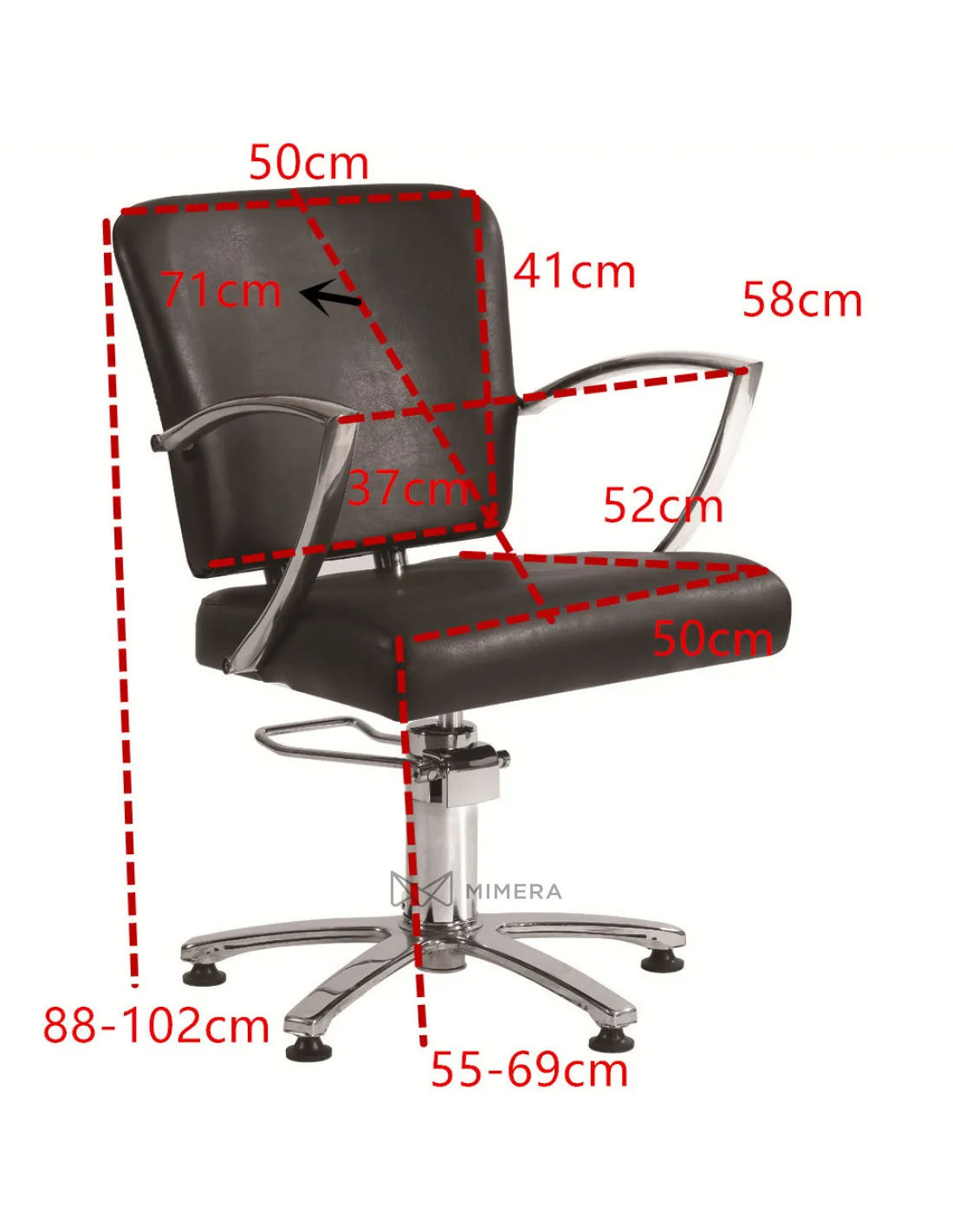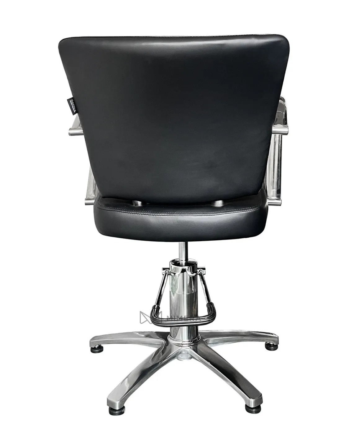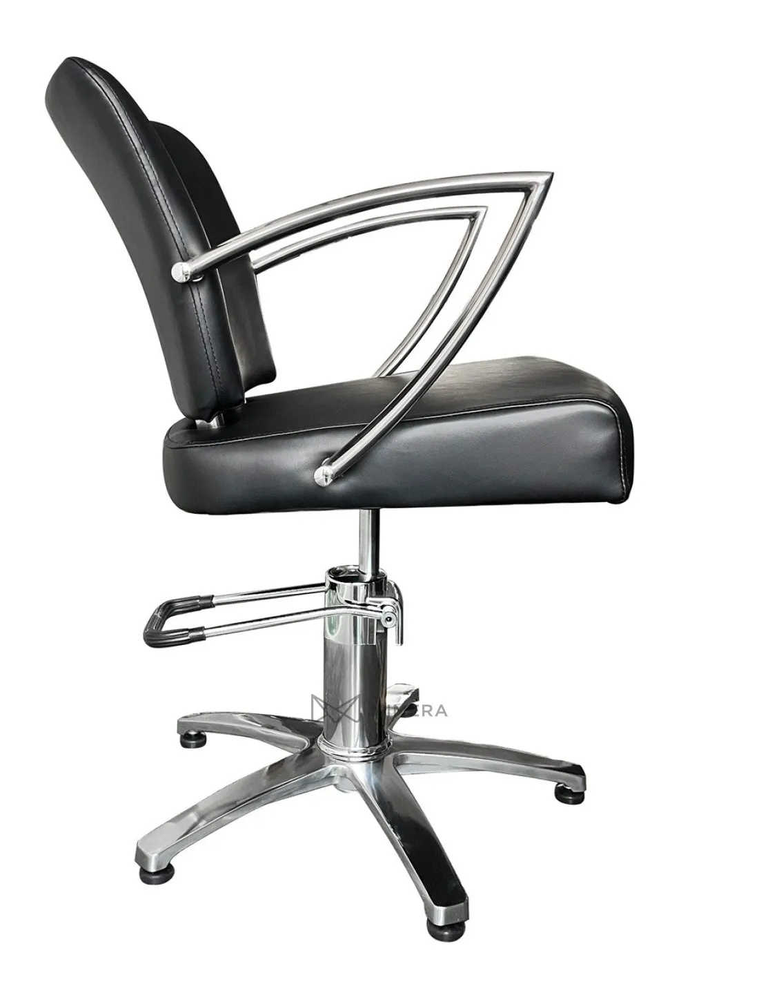 Modern, funktional und auffällig – der Friseurstuhl BASE CHROME in mattem Schwarz überzeugt auf den ersten Blick. Robuste Metallarmlehnen und ein bequemes Polster bieten stilvollen Komfort für den täglichen Einsatz.