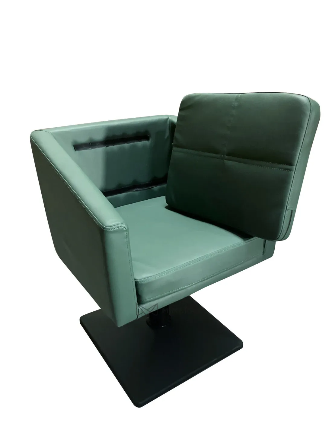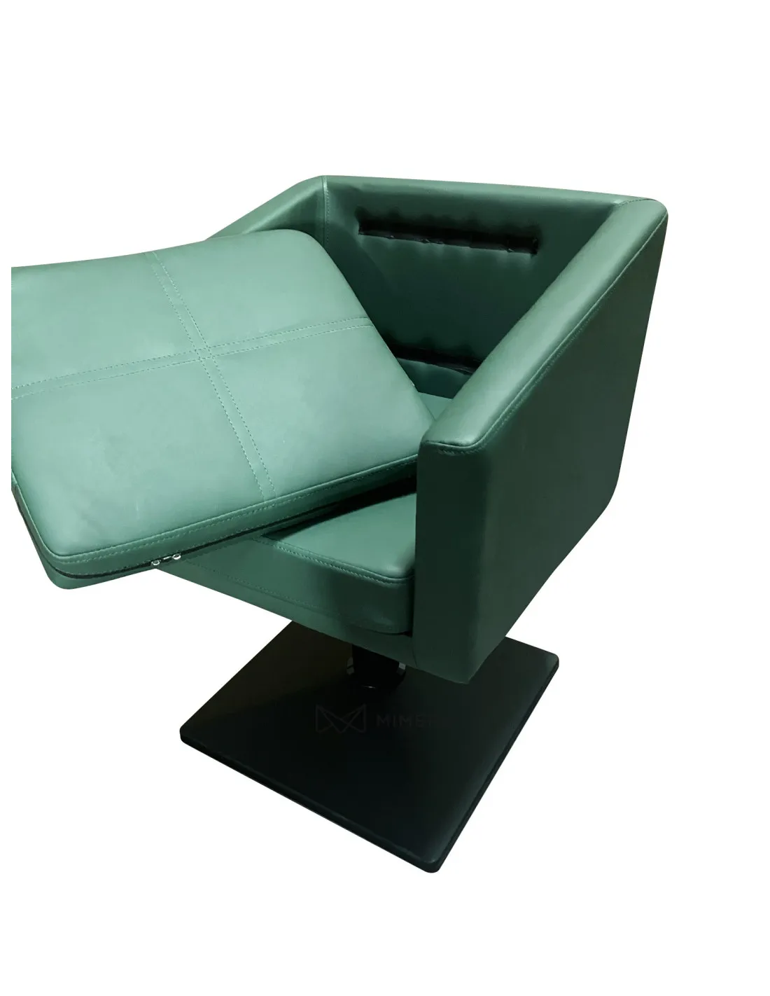 Der Friseurstuhl CUBE BLACK - Samtgrün ist ein stilvolles und praktisches Möbelstück, das perfekt in jeden modernen Friseursalon passt. Er besticht durch sein schlichtes und elegantes Design, hochwertige Verarbeitung und Komfort für Kunden und Friseure.