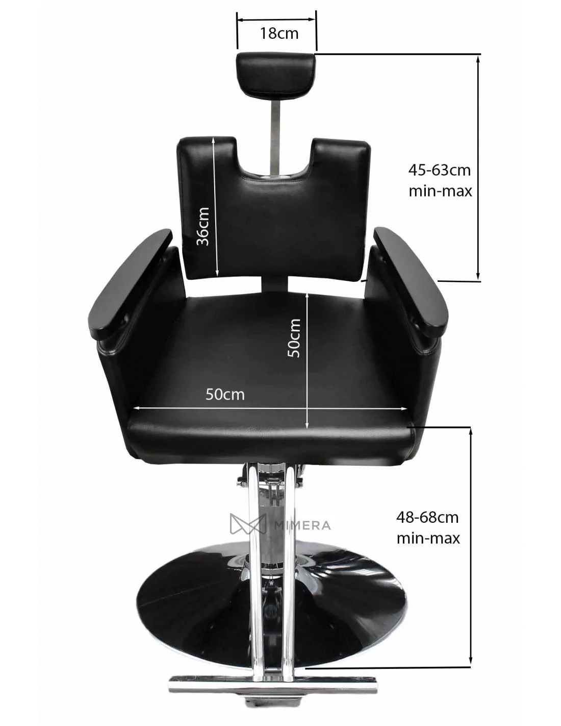 Der stilvolle Stuhl verfügt über eine verstellbare Kopfstütze, solide Arm- und Fußstütze, einen verstellbaren Lehnstuhl und robuste verchromte runde Basis. Der Sitz und der Rücken sind dick gepolstert, um einen weichen Komfort zu bieten.