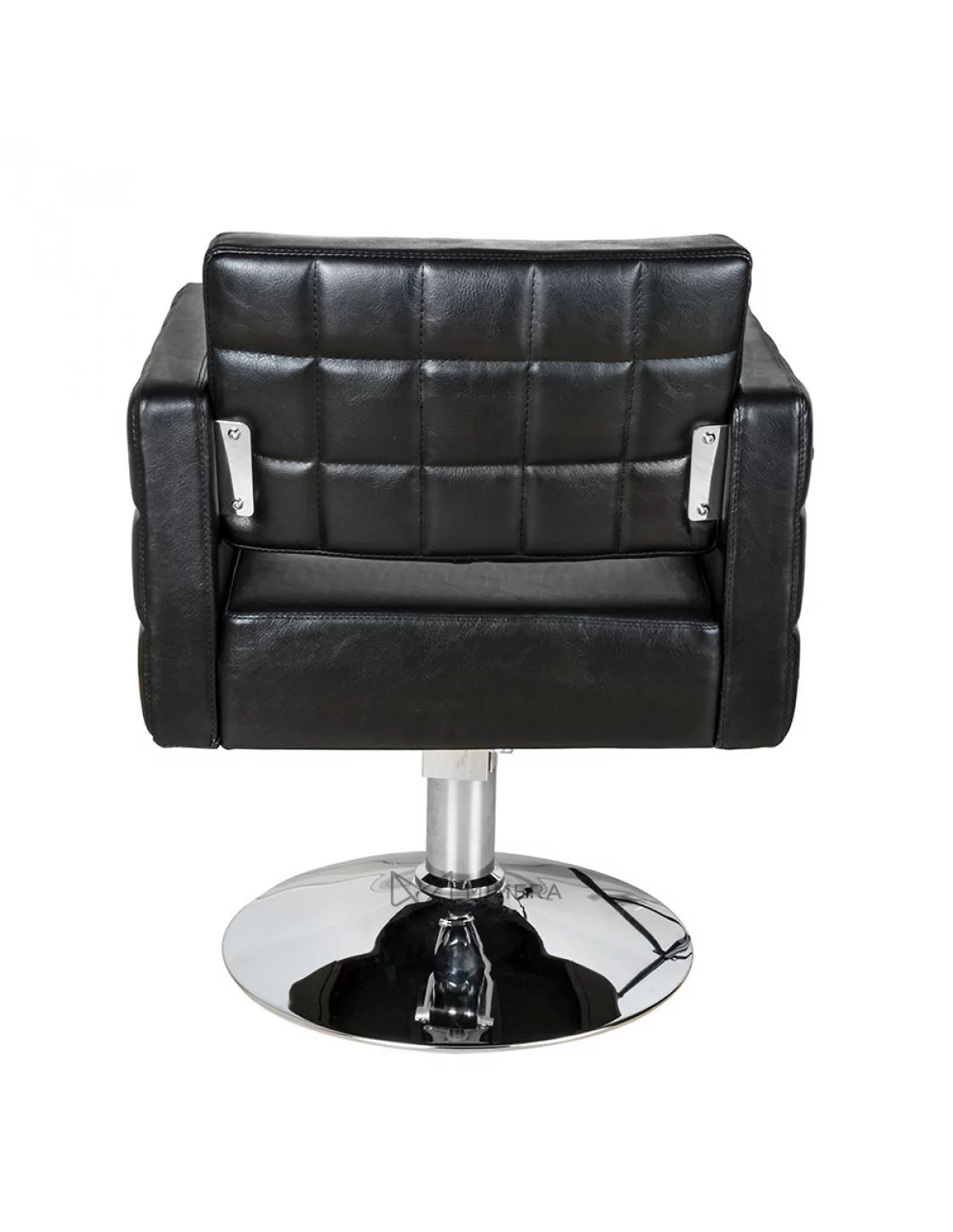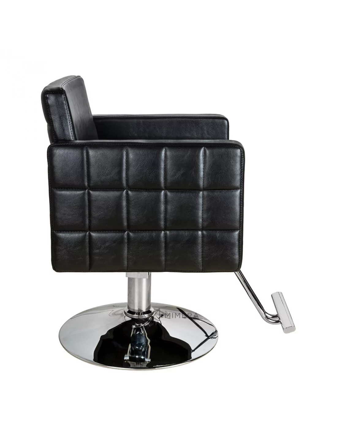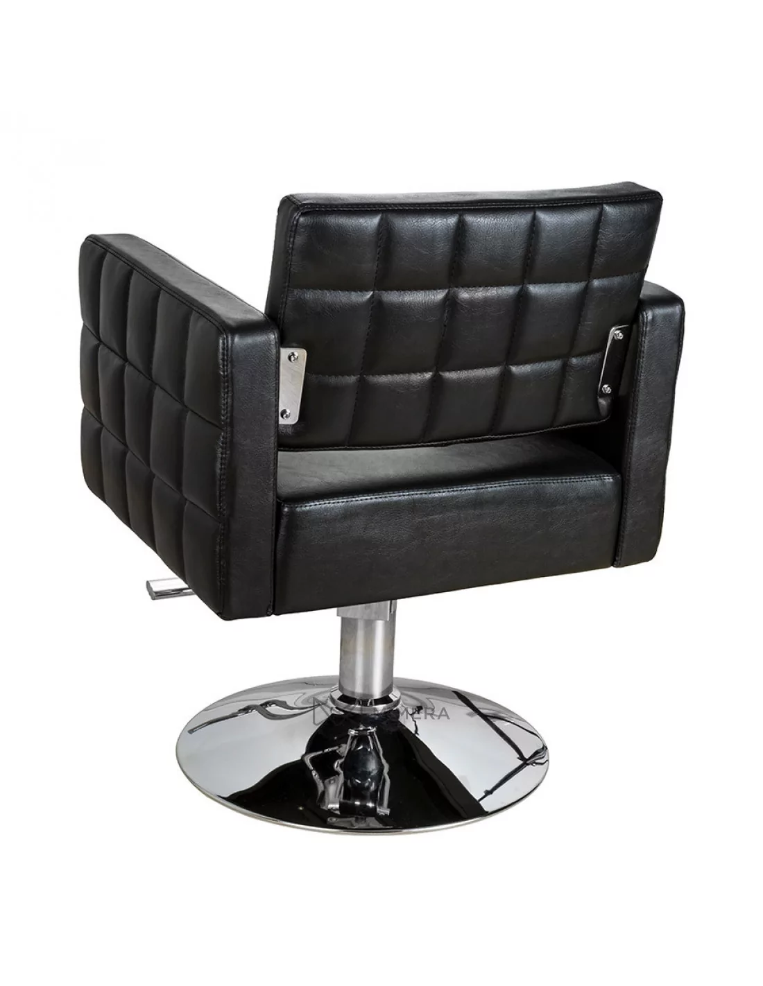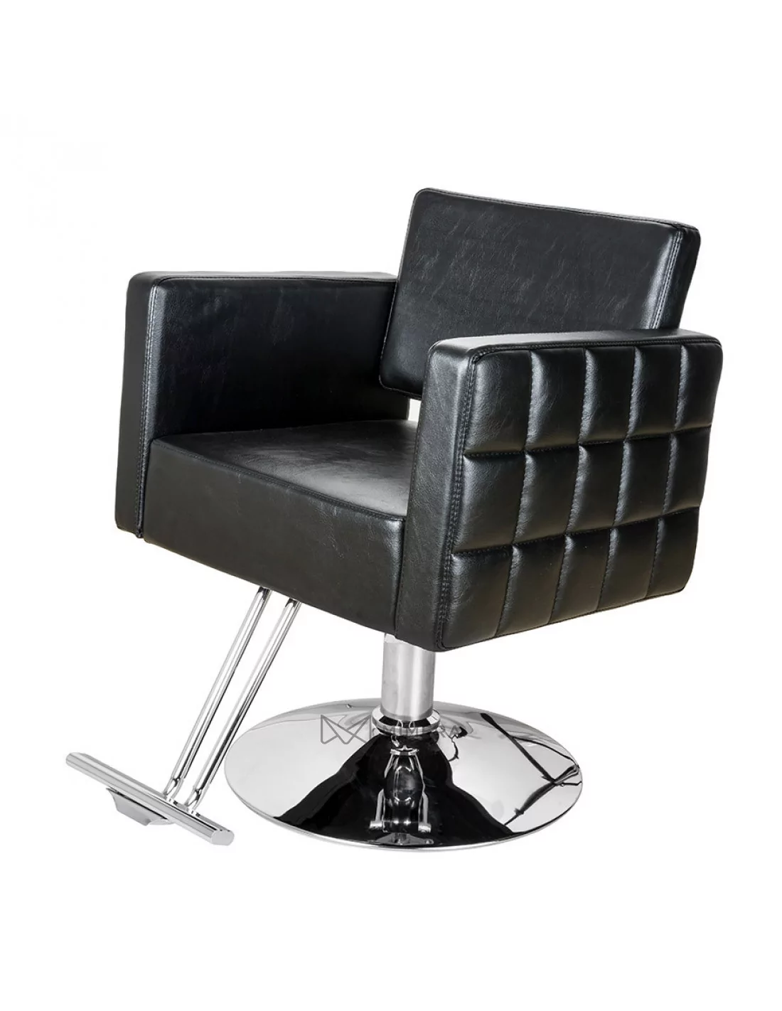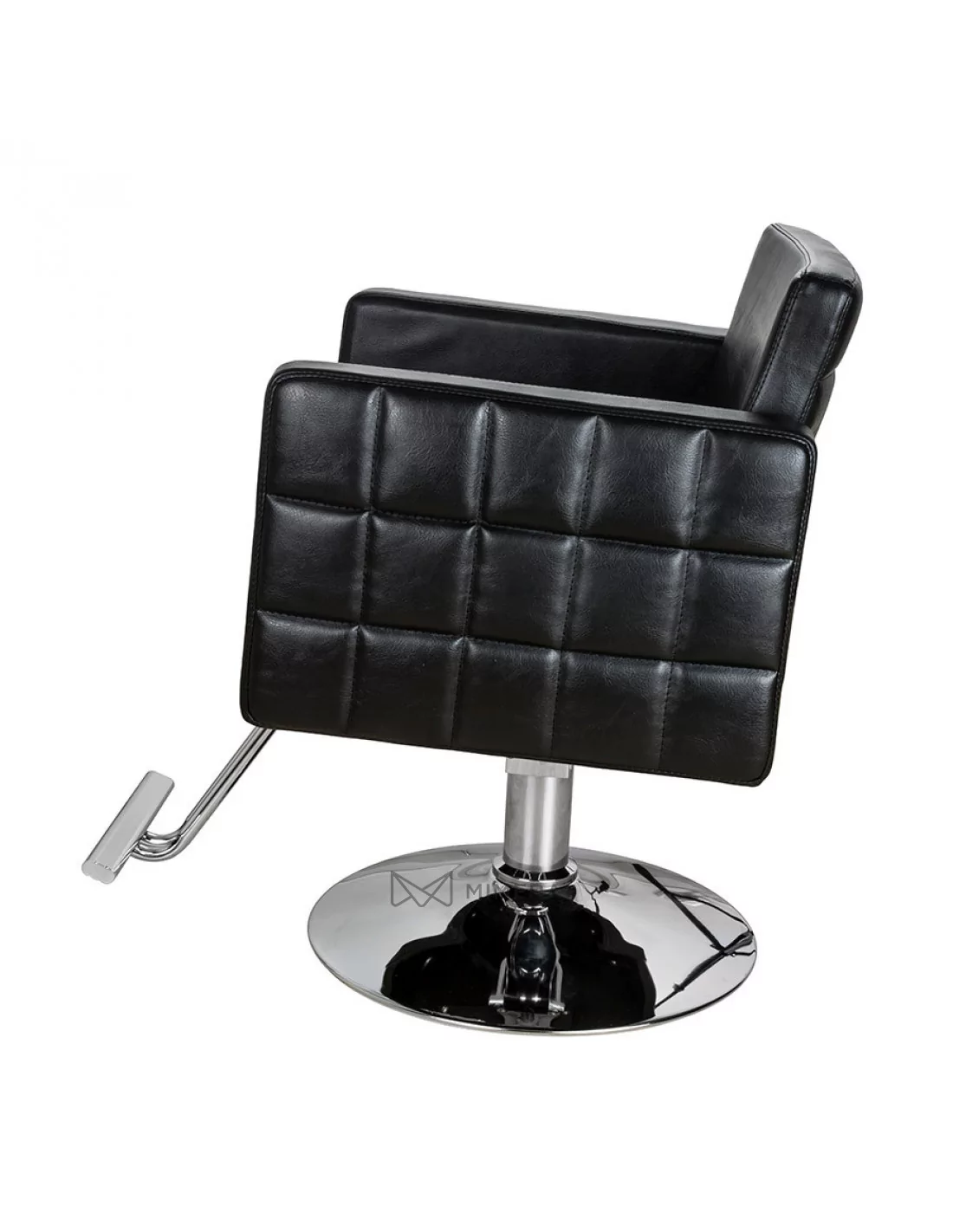 Sehr attraktiver Friseurstuhl mit gesteppten Seiten. Dank dem Spalt zwischen der Sitzfläche und der Rückenlehne wird die Reinigung und Pflege kinderleicht. Hier können sich keine Schnitthaare verfangen.