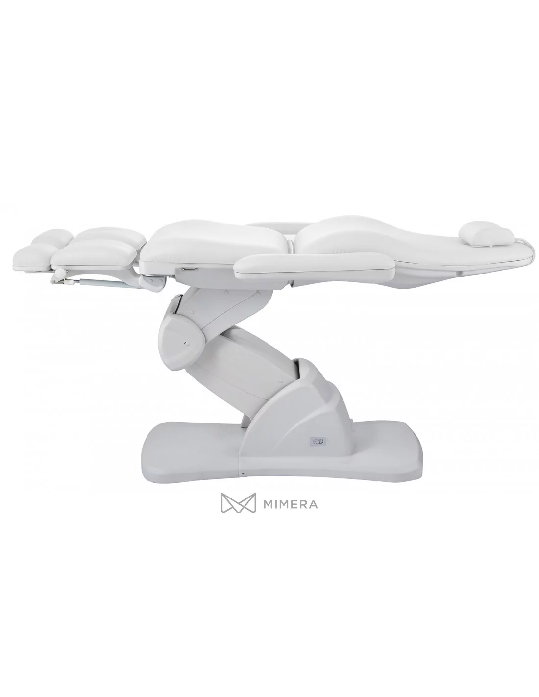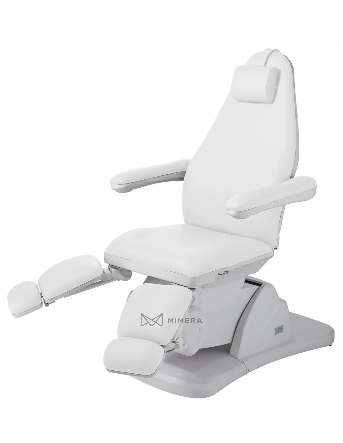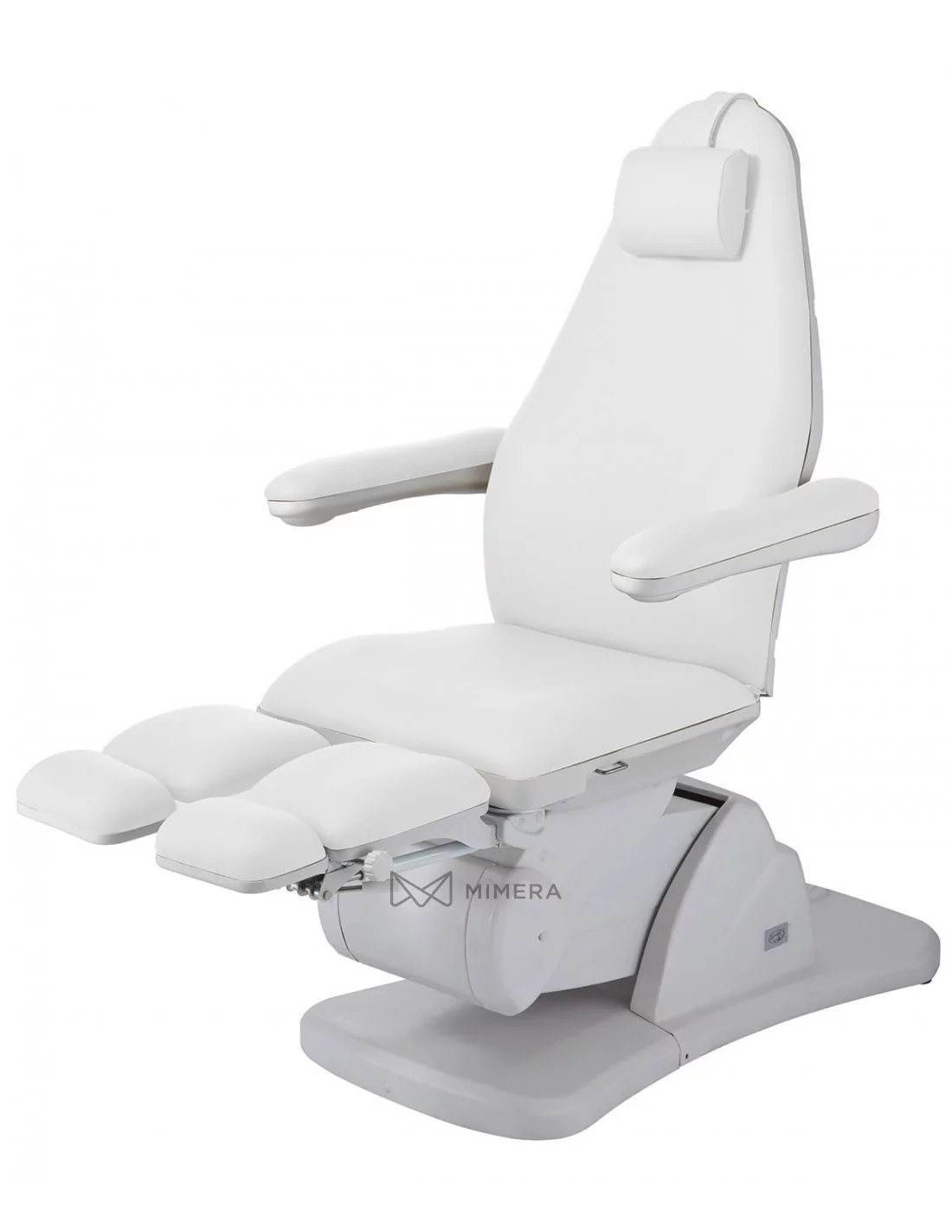 Stilvoller Fußpflegestuhl BARON mit 3 Motoren zur Einstellung von Höhe, Rückenlehne und Sitzneigung. Die Fußteile sind um 90 ° seitlich drehbar, über einen Pneumatikhebel stufenlos höhenverstellbar und auch ausziehbar.