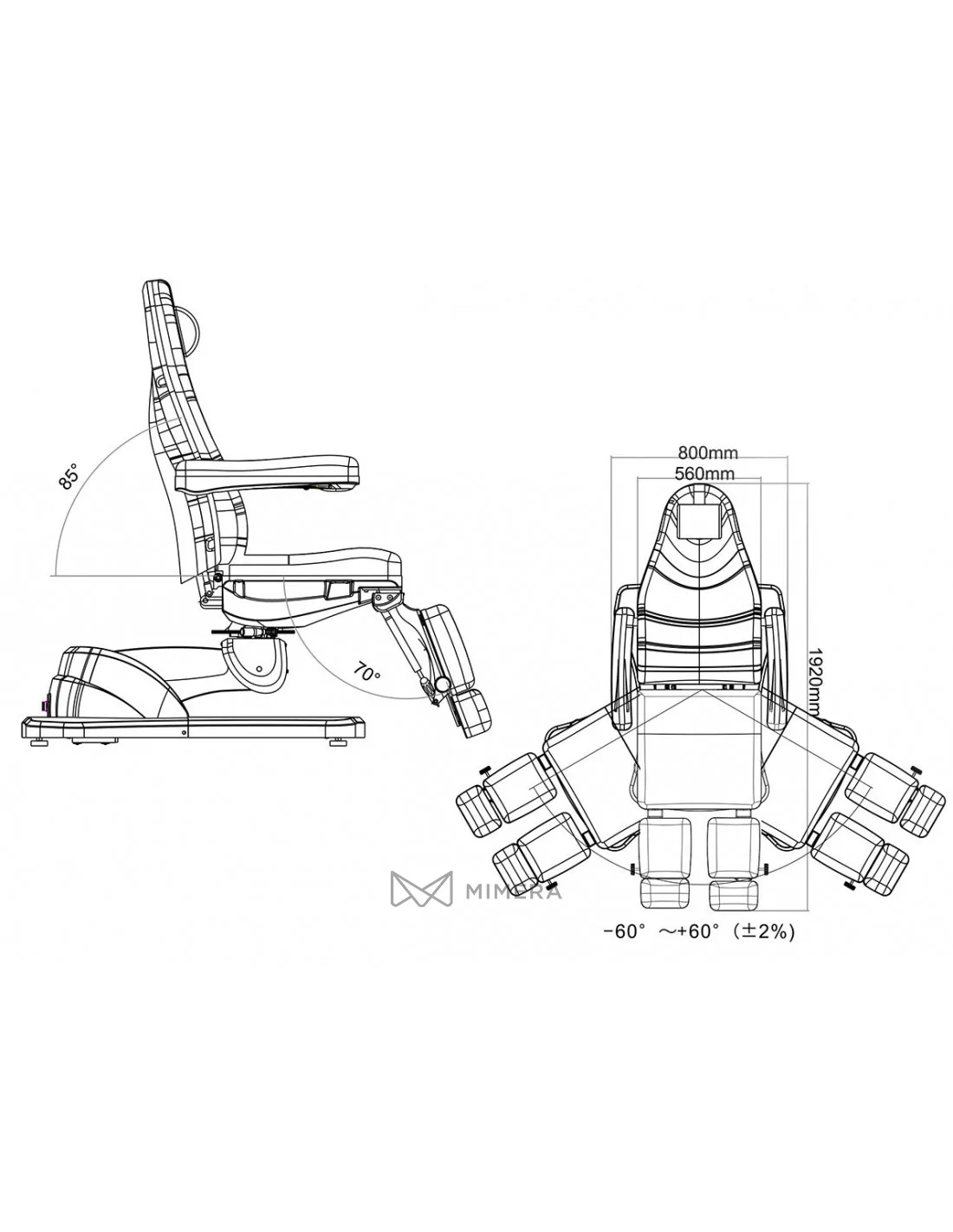 - Stuhl seitlich drehbar (60°~ +60°)