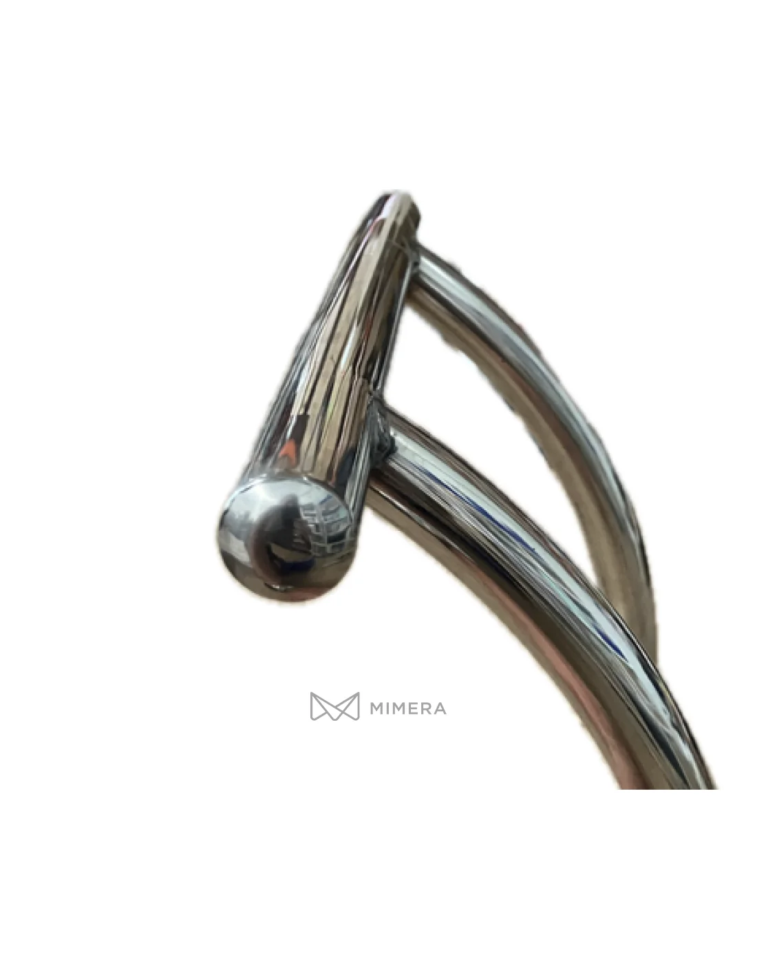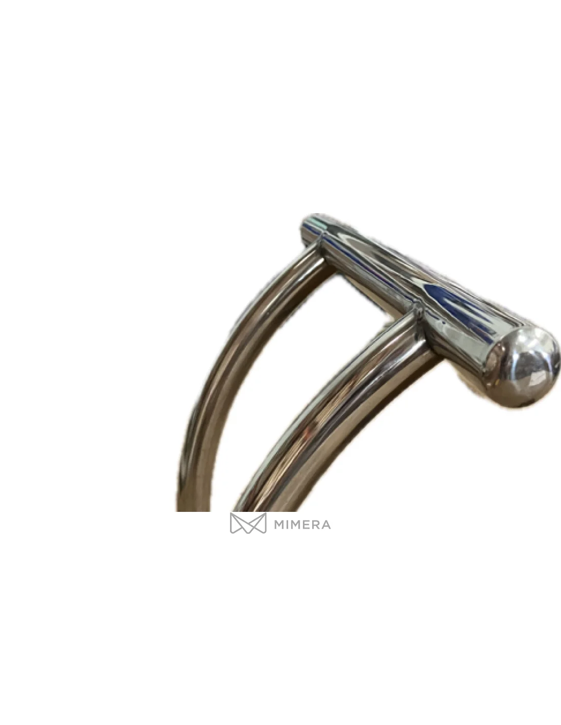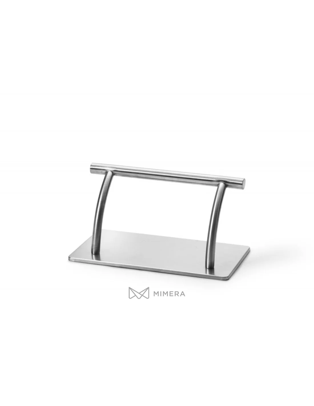 Fußstütze aus rostfreiem Stahl. Die Fußstütze ist freistehend, sie muss nicht am Boden verschraubt werden.