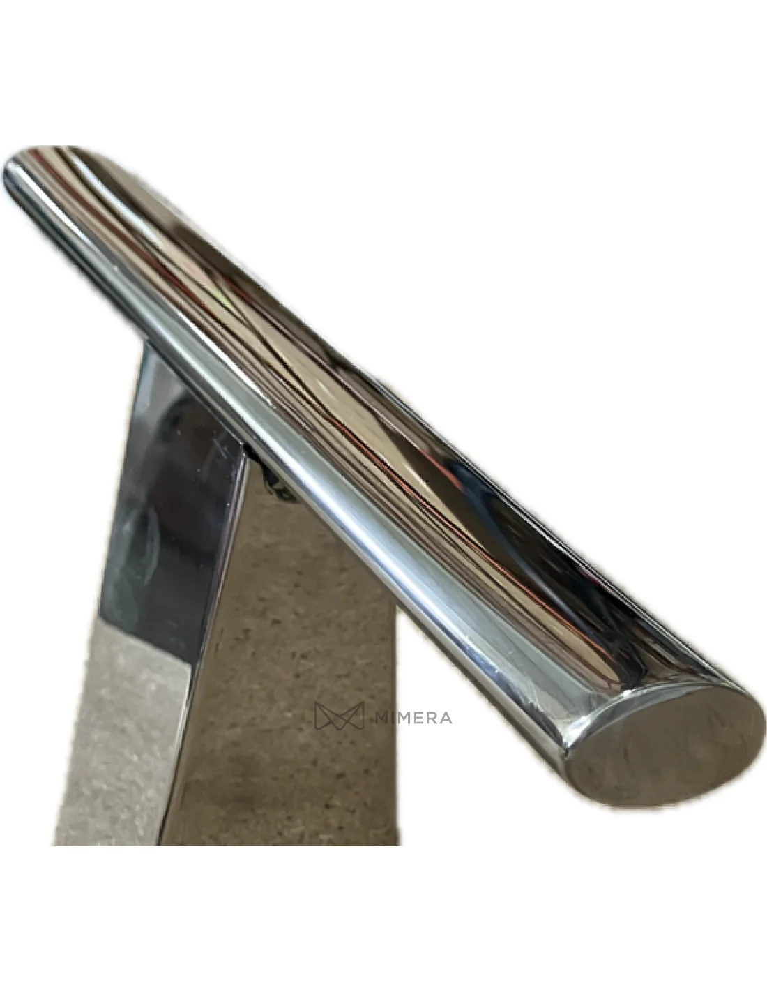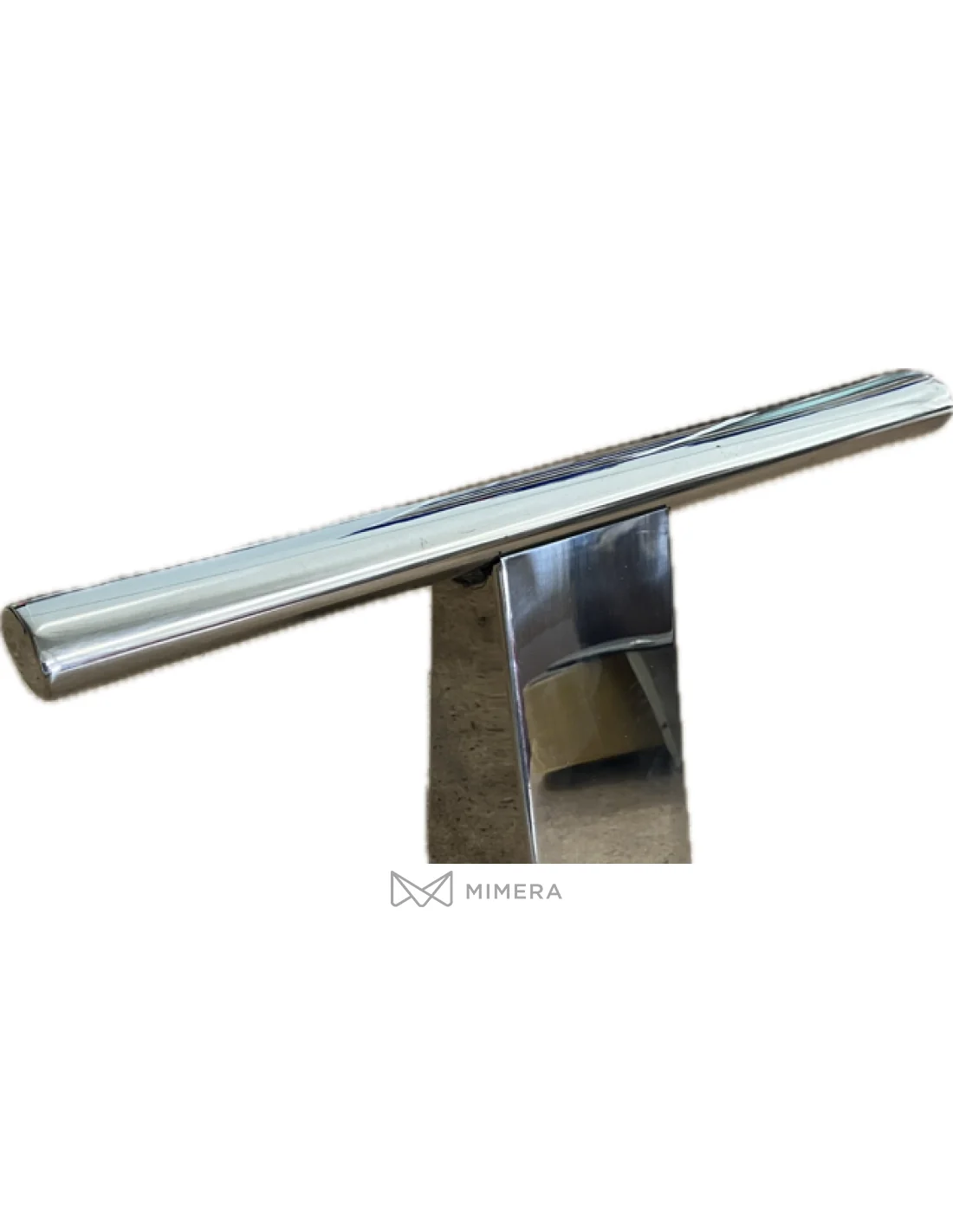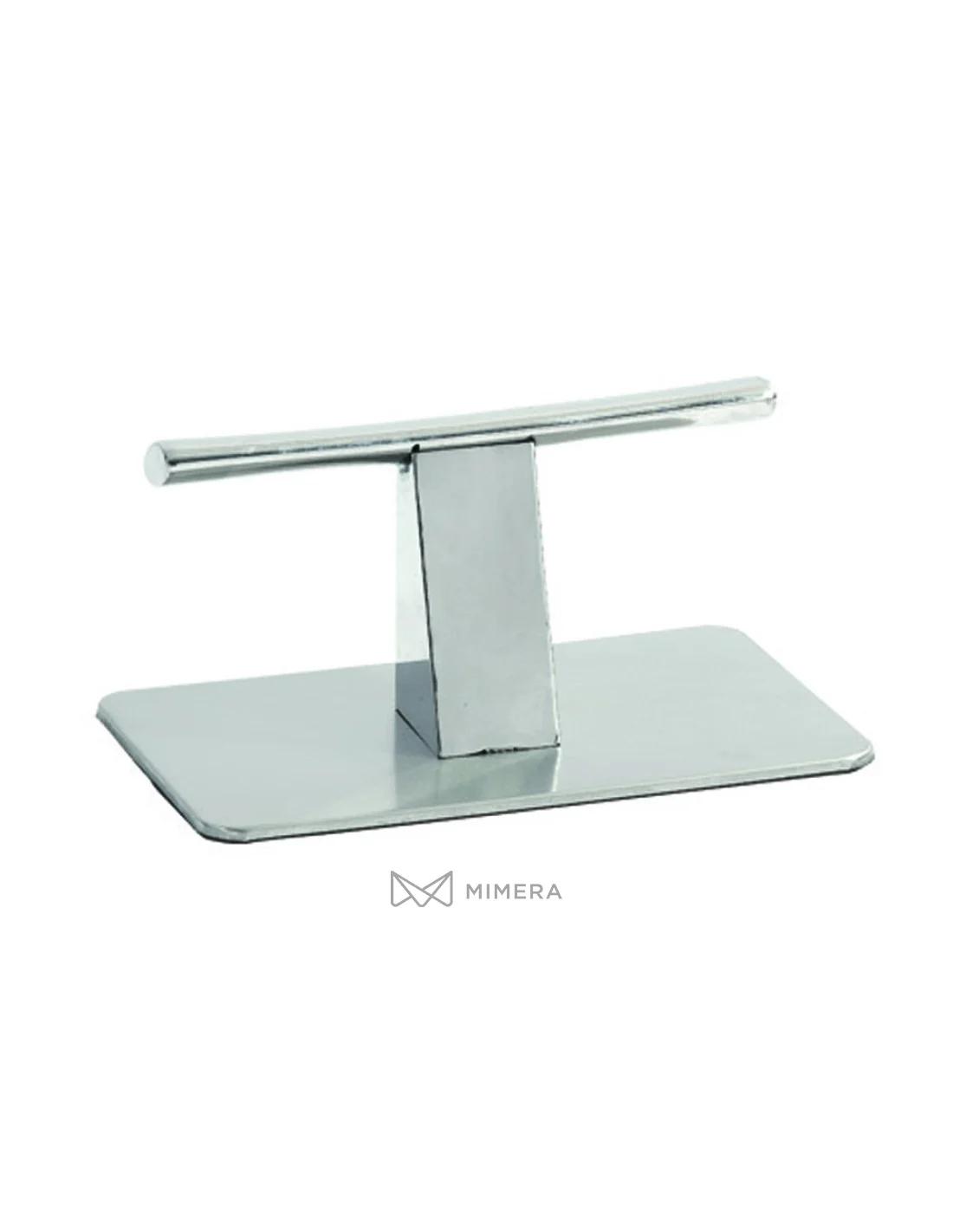Fußstütze aus rostfreiem Stahl. Die Fußstütze ist freistehend, sie muss nicht am Boden verschraubt werden.