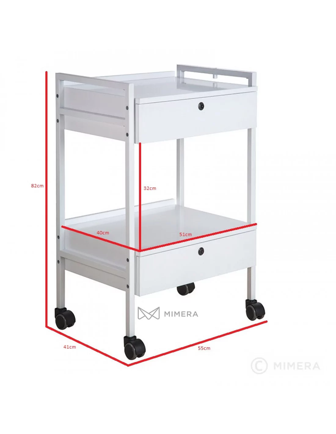 • Rollen für die Bewegung: Der Wagen ist mit Rollen ausgestattet, die eine einfache Bewegung am Arbeitsplatz ermöglichen.