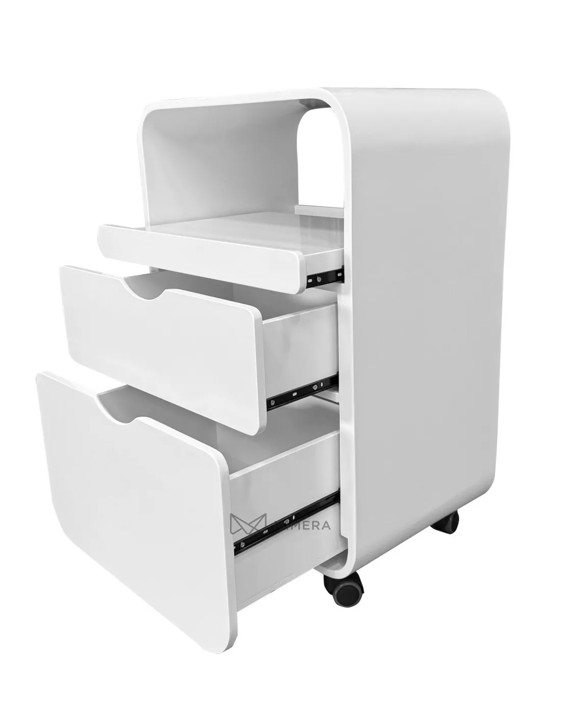 Der Instrumentenwagen FLOW eignet sich ideal zur Organisation des Arbeitsplatzes in Kosmetiksalons, Wellness-Zentren, Massagesalons, Pediküre-Studios oder Büros. Sein praktisches Design und ausreichend Stauraum machen ihn zu einer universellen Lösung für jede professionelle Umgebung.