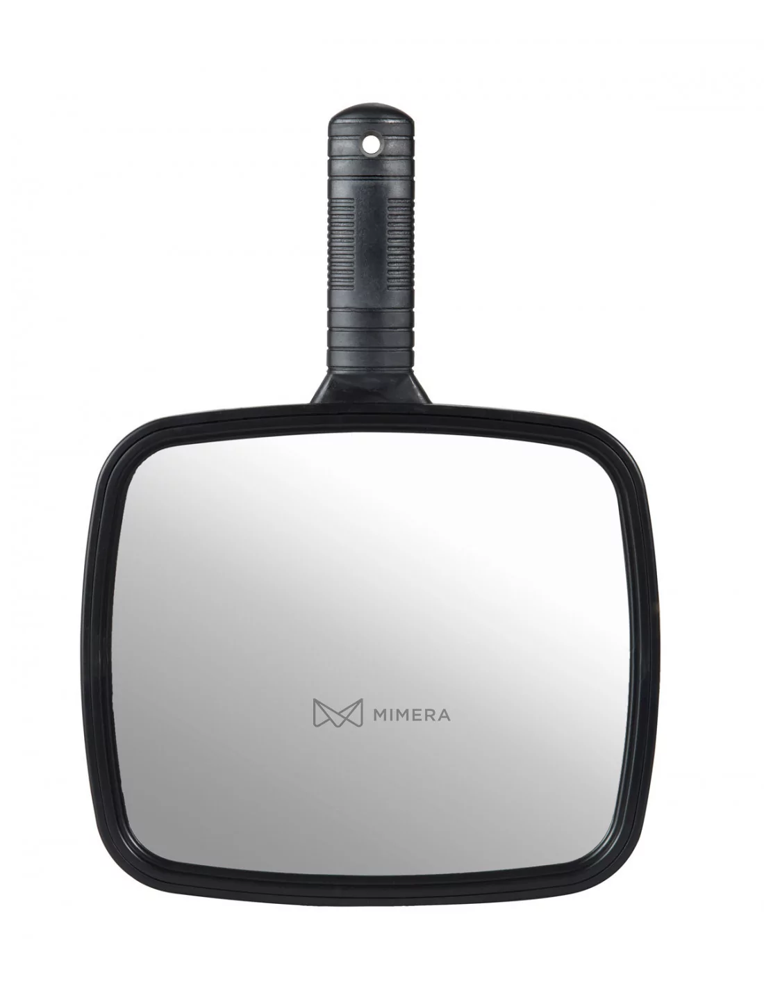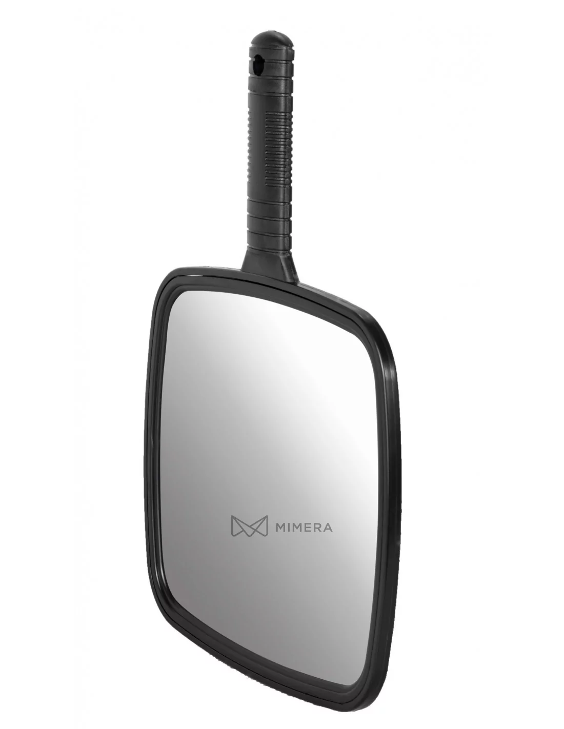 Friseurspiegel - rechteckig, wobei die Spiegeloberfläche in einen schwarzen Rahmen aus massivem Kunststoff mit einem Loch zum Aufhängen eingesetzt wird. Der Spiegel hat einen Griff für eine bequeme Handhabung.
