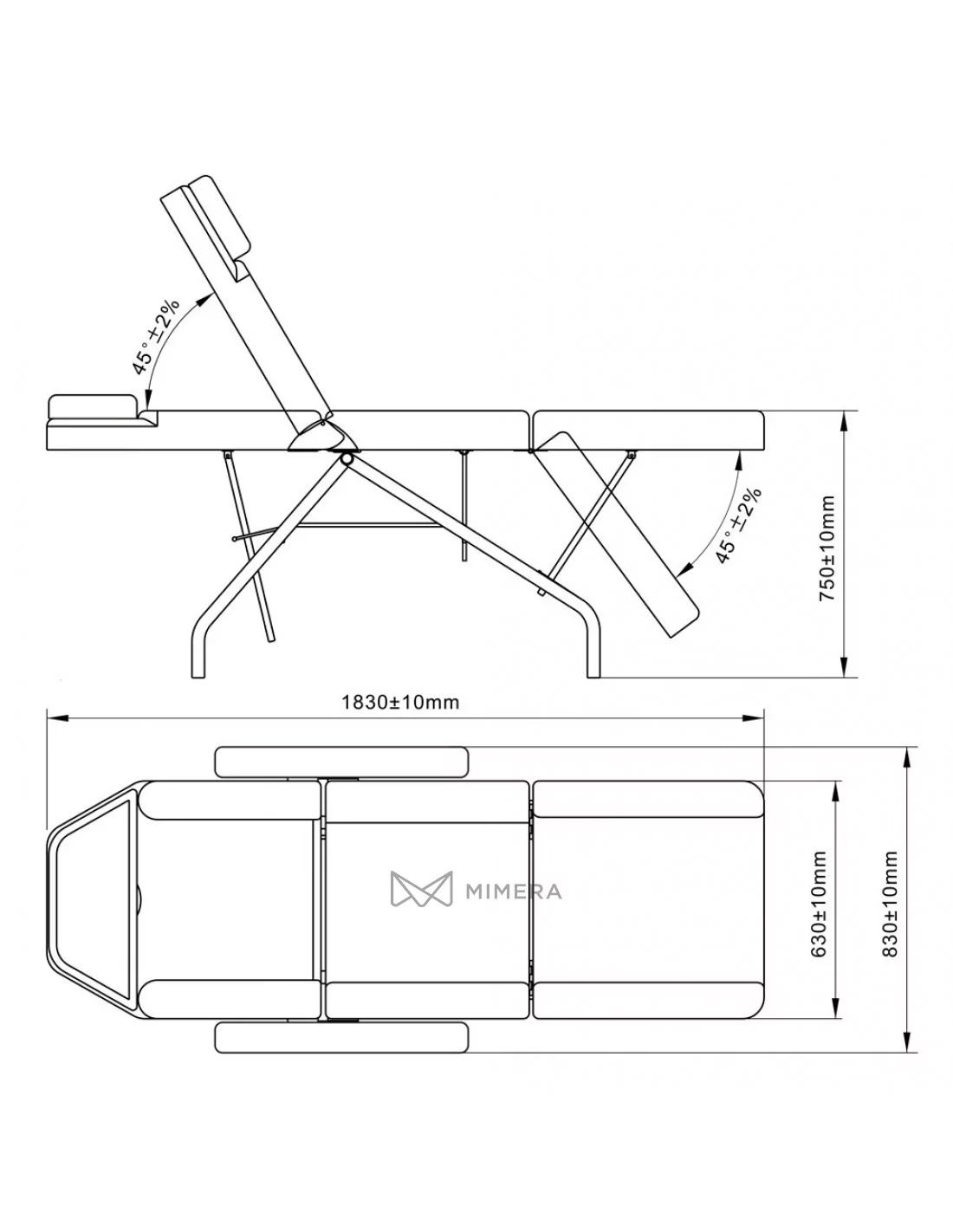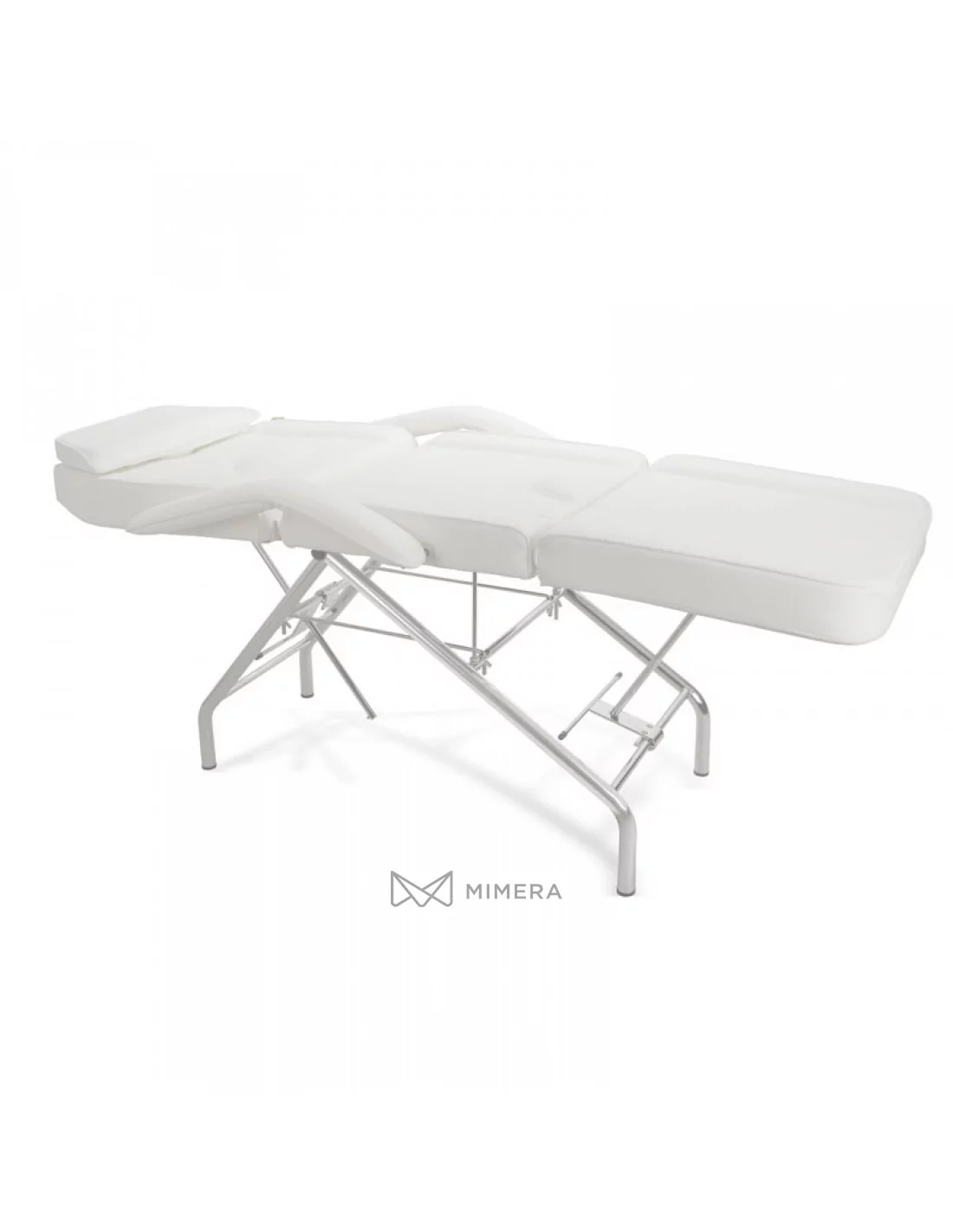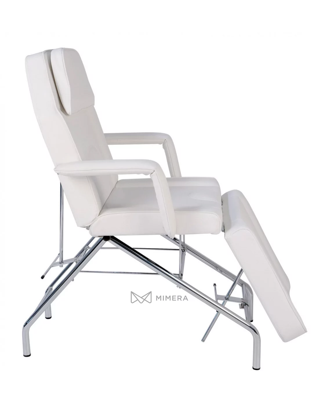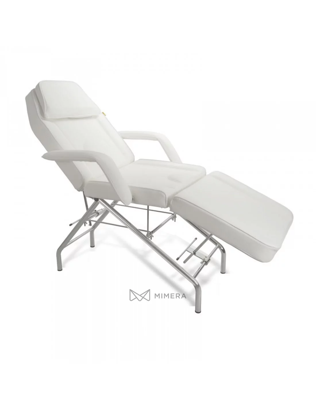 Kosmetischer Stuhl mit minimalistischem, modernem Design und Gestell aus Chrom. Er wurde für kosmetische Behandlungen und Körperpflege in Schönheitssalons entwickelt, ist aber auch für Massagen und Wellness geeignet. Rückenlehne und Fußteil sind manuell in einem Winkel von bis zu 45 ° verstellbar und einfach zu bedienen. 11 cm breite Armlehnen sind abnehmbar und passen sich der Liegestuhlposition an. Die Liege hat einen Gesichtsausschnitt. Im Lieferumfang enthalten ist ein Kissen, das in die Gesichtsöffnung passt. Die hochwertige PU-Polsterung ist langlebig und pflegeleicht.