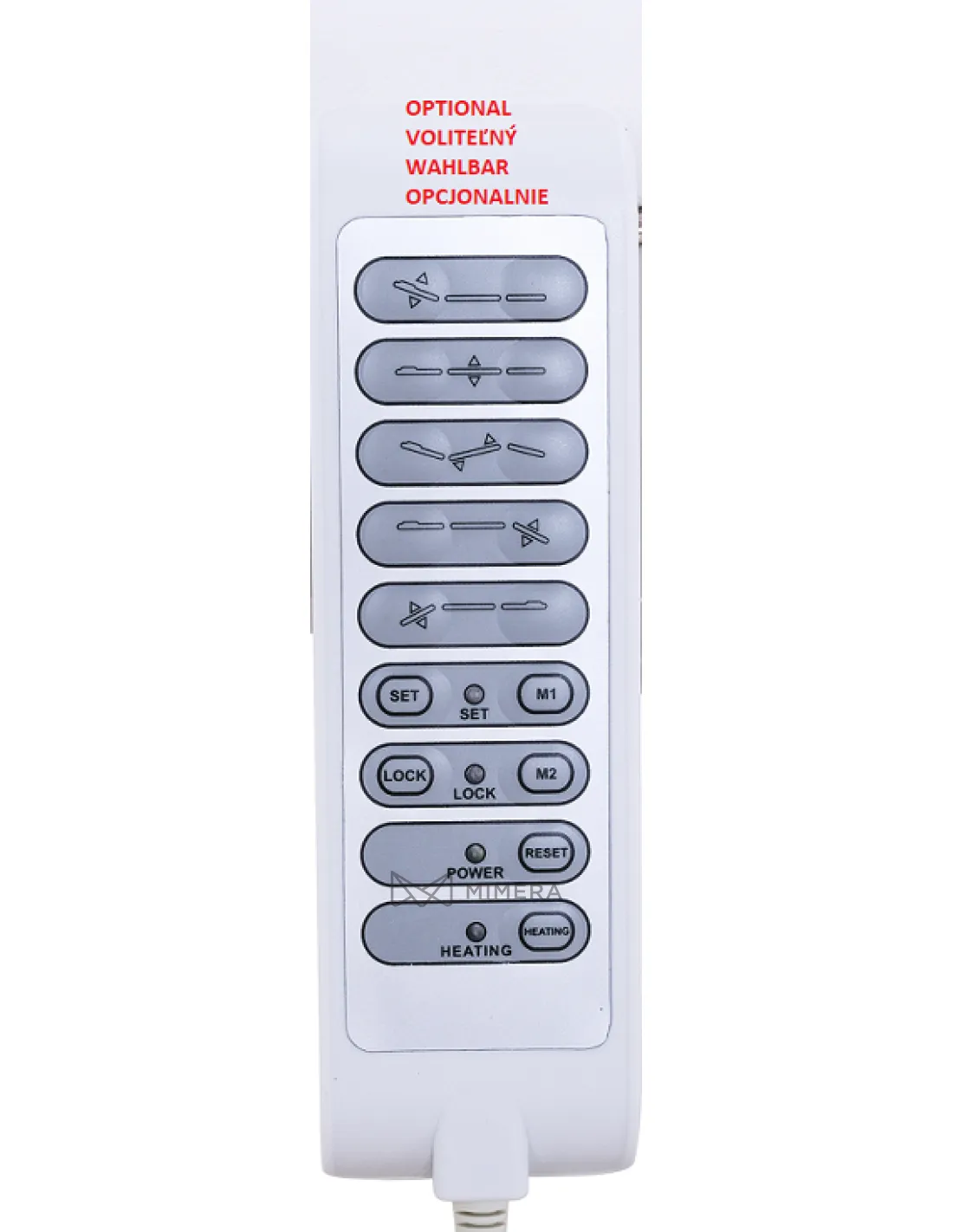 Die Liege ist mit vier Motoren ausgestattet, mit denen Sie die Höhe der Liege, die Neigung der Rückenlehne, die Neigung des Sitzes (Wiege) und des Fußteils einstellen können. Die Position wird durch Kippschalter auf der Rückseite und im Sitz oder über eine optionale Fernbedienung (Hand oder Fuss) eingestellt.