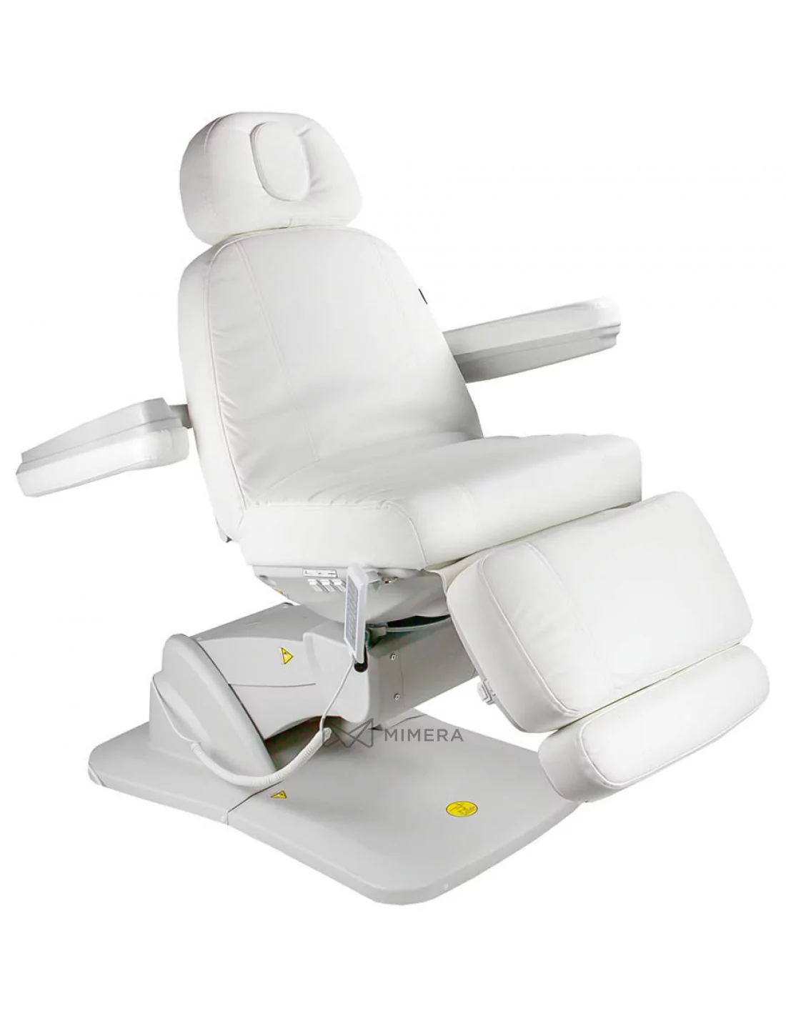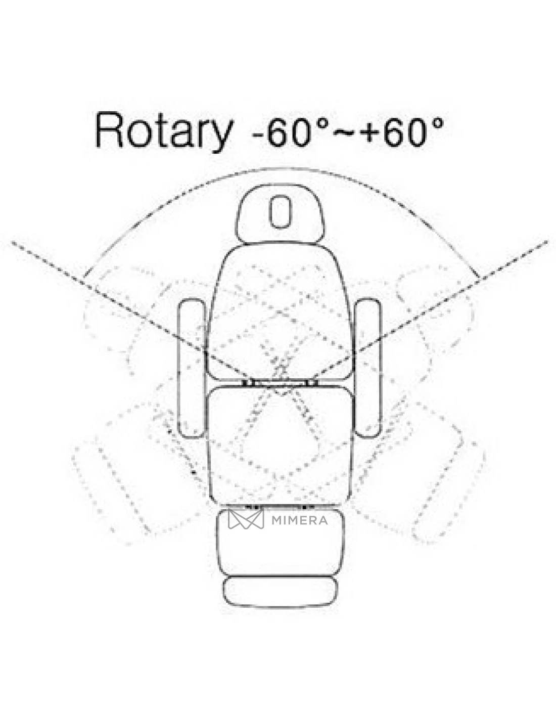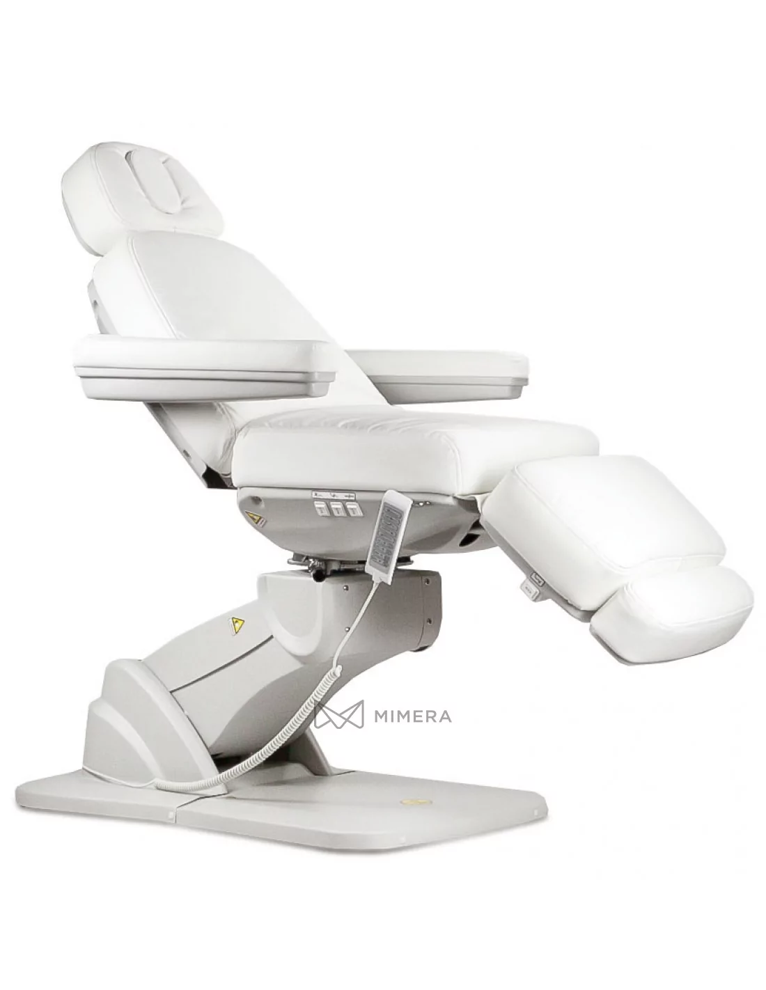 Weitere wesentliche Vorteile diese Liege sind seine geringe Mindesthöhe und die Rotation (Schwenkfunktion), ermöglicht eine komfortable Bereitstellung auch für niedrigere oder ältere Kunden. Die Liege ist mit vier Motoren ausgestattet, mit denen Sie die Höhe der Liege, die Neigung der Rückenlehne, die Neigung des Sitzes (Wiege) und des Fußteils einstellen können. Seine Position wird über in Rückenlehne und Sitz integrierte Tasten, über eine manuelle Handfernbedienung (im Paket enthalten) oder eine optionale Fußsteuerung eingestellt.