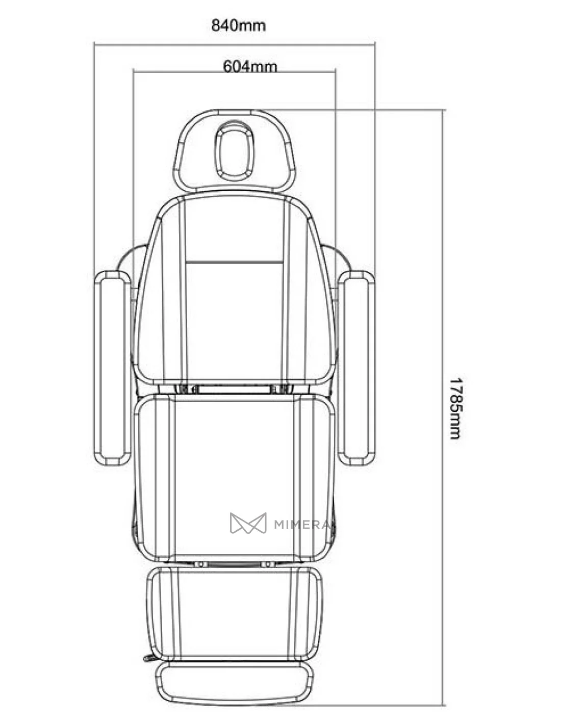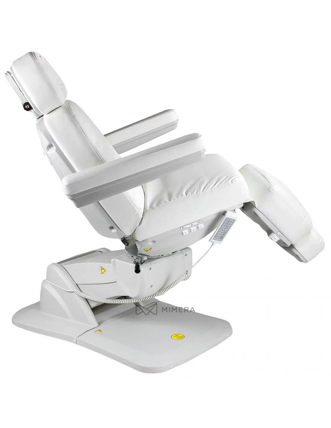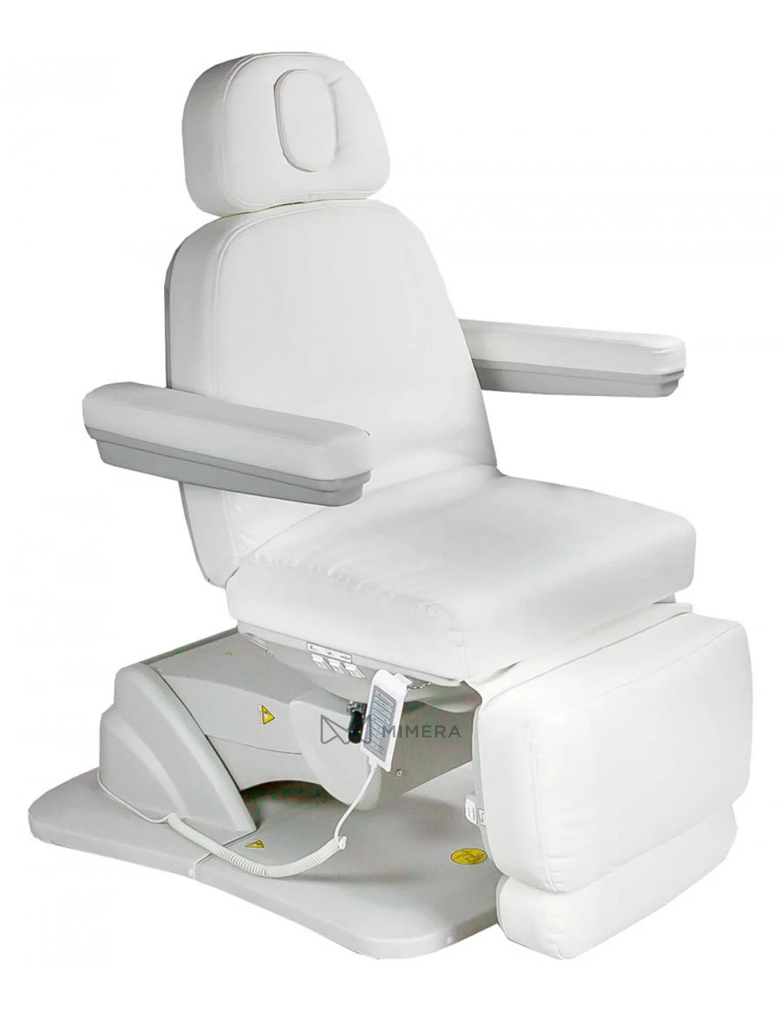 Weitere wesentliche Vorteile diese Liege sind seine geringe Mindesthöhe und die Rotation (Schwenkfunktion), ermöglicht eine komfortable Bereitstellung auch für niedrigere oder ältere Kunden. Die Liege ist mit vier Motoren ausgestattet, mit denen Sie die Höhe der Liege, die Neigung der Rückenlehne, die Neigung des Sitzes (Wiege) und des Fußteils einstellen können. Seine Position wird über in Rückenlehne und Sitz integrierte Tasten, über eine manuelle Handfernbedienung (im Paket enthalten) oder eine optionale Fußsteuerung eingestellt.