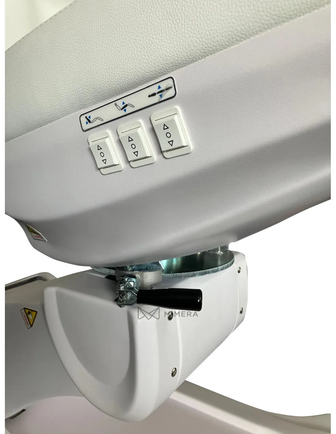 Der NICO E3 verfügt über 3 Motoren, die Höhe, Rückenlehne und Sitzneigung regulieren. Die Fußstütze wird manuell gesteuert und hat auch ein ausziehbares Beinteil. Die Liege ist in beide Richtungen um einen Winkel (~ 60 ° bis + 60 °) drehbar. Die Bedientasten befinden sich auf dem Sitz und auf der Rückseite, sodass Sie sie immer zur Hand haben. Dieses Modell ist mit einer RESET-Funktion ausgestattet, um die Liege in ihre ursprüngliche Position zurückzubringen. Die Höhe und Neigung der Kopfstütze kann auch manuell eingestellt werden. Die Kopfstütze hat einen Gesichtsausschnitt, die den Kunden noch besseren Komfort bietet. Abnehmbare und klappbare Armlehnen bieten maximalen Komfort während der kosmetischen Behandlung. Hochwertige PU-Polster sind nicht nur ergonomisch geformt, sondern auch praktisch und leicht zu waschen.