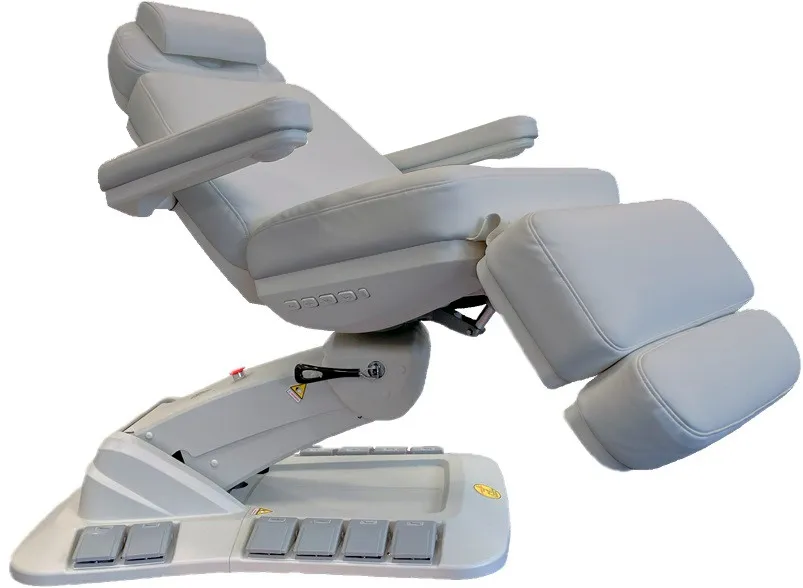 Sie ist mit einer extra weichen, mehrlagigen Polsterung aus PU-Mikroleder und einem glatten Muster (Microgoove) ausgestattet, das Ihren Kunden ein Lächeln ins Gesicht zaubern wird. Deren Komfort wird durch die eingebaute Heizfunktion unterstützt, die jede Behandlung auch an kalten Tagen angenehmer macht. Zur Zufriedenheit Ihrer Kunden wird auch die LED-Beleuchtung mit wechselnden Farben beitragen, die die Tasten, die Pedale und sogar die Basis der Liege beleuchtet.