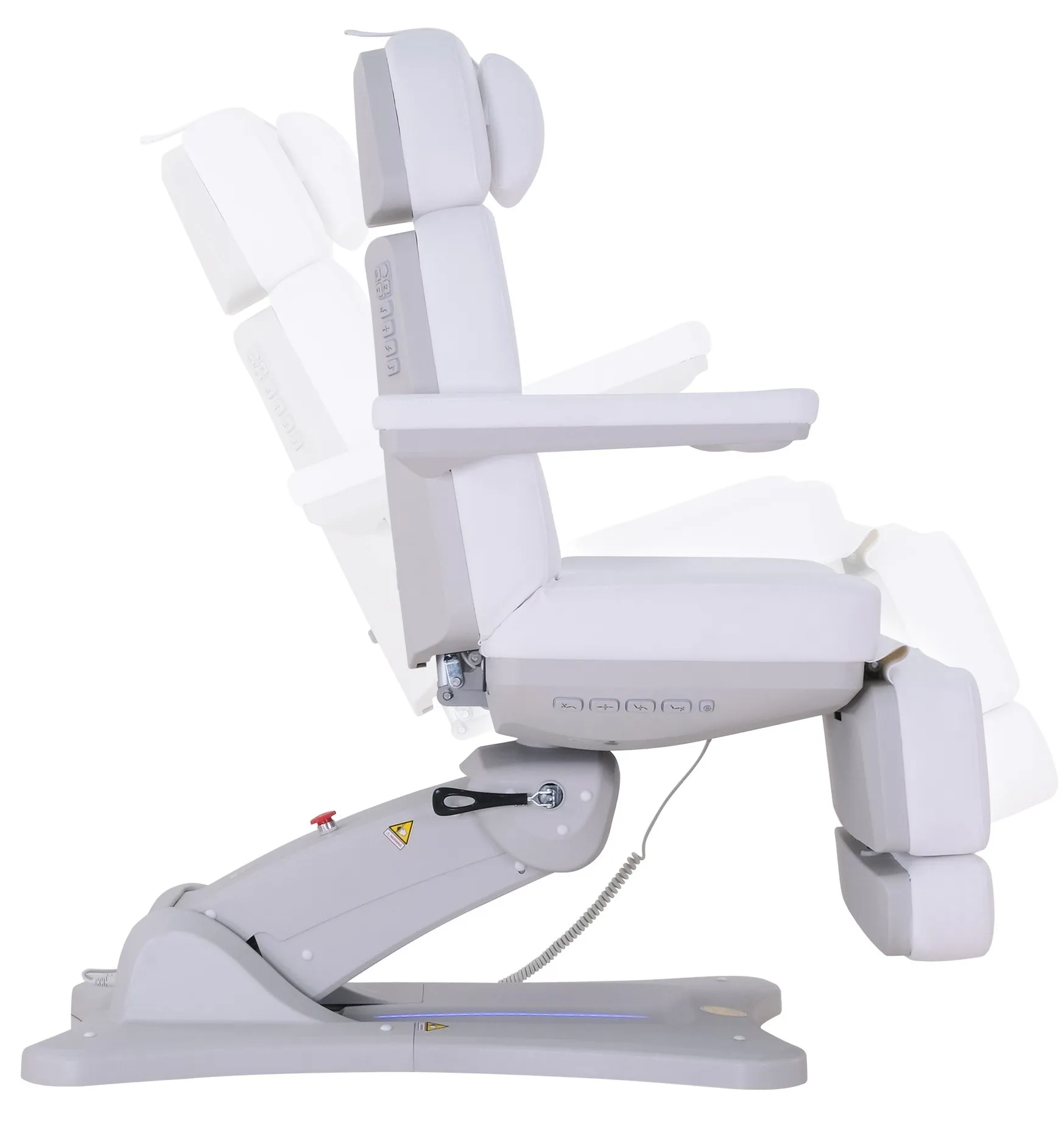 - 4 leise Motoren für die elektrische Steuerung von Höhe (51-83 cm), Rückenlehne (0°~82°), Neigung der Liege (0°~20°) und Fußstütze (0°~85°)