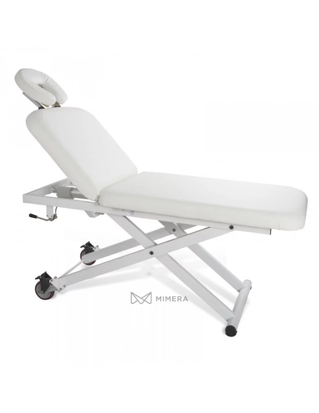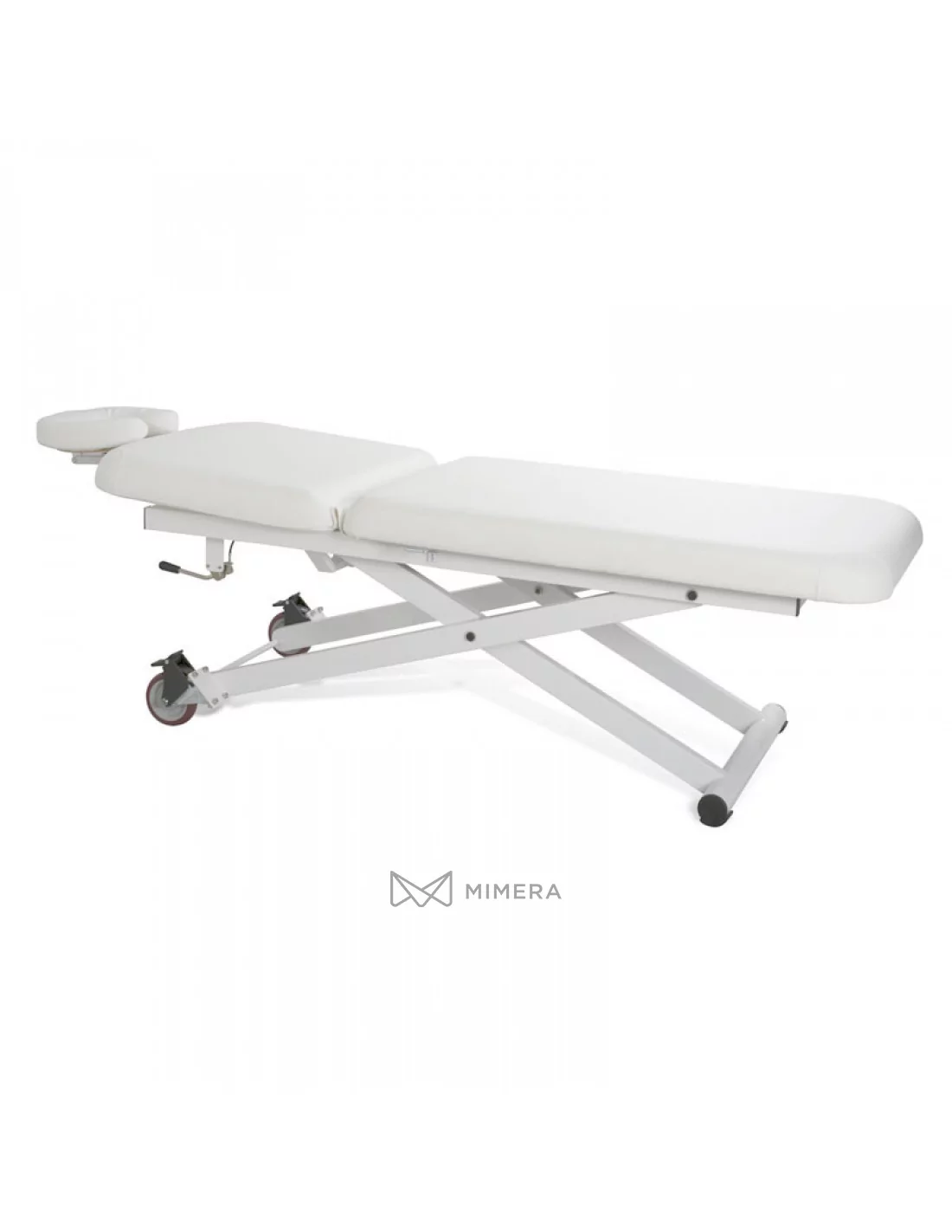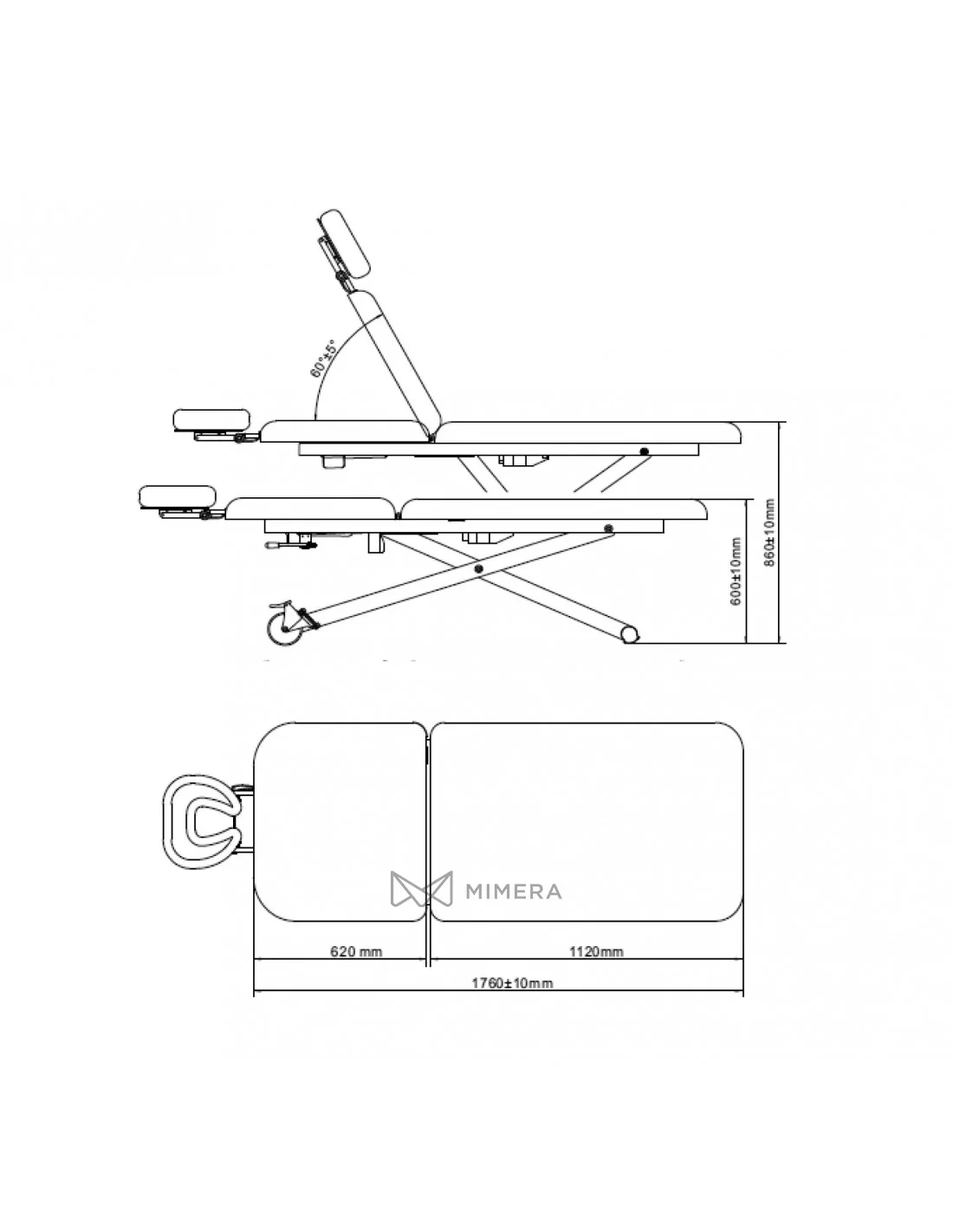 Ein elektrischer Massagetisch bestehend aus zwei Teilen und einer stabilen Konstruktion. Ausgestattet mit einem hochwertigen Motor zur Höhenverstellung dank einem Schalter, der an der Konstruktion befestigt ist. Die Neigung des Rückens ist mit einer Gasdruckfeder einstellbar. Die Kopfstütze kann manuell eingestellt werden. Räder ermöglichen eine leichte Bewegung im Raum.