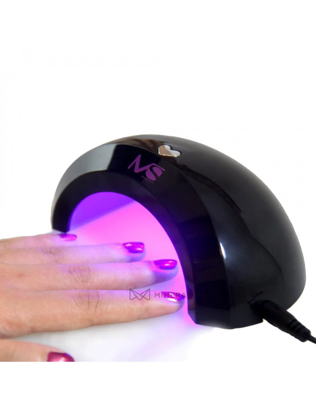 Leises und zügiges Trocknen ohne Lüfter mit inkludierter Timer- Funktion, ermöglicht durch eine einfache Bedienung. Einmaliges Betätigen der Timer- Taste aktiviert die Lampe für 60 Sekunden, beim erneuten Betätigen beträgt die Zeit 45 Sekunden. Überzeugend ist auch das kompakte Design, kombiniert mit der ergonomischen Form ist es das ideale Gerät für den professionellen Gebrauch im Studio. Geeignet für fast alle Arten von LED- Gel Lacken.