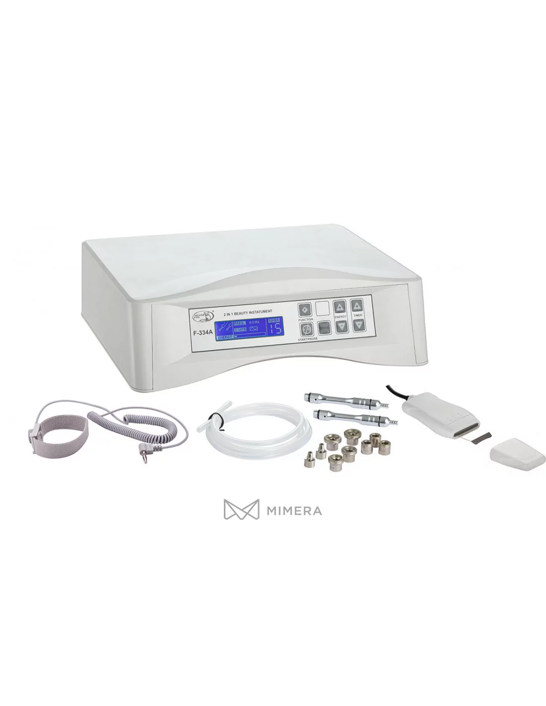 Das multifunktionale Kosmetikgerät F-334 kombiniert zwei Funktionen: Diamant-Mikrodermabrasion und Ultraschallspatel \"Skin Scrubber\".