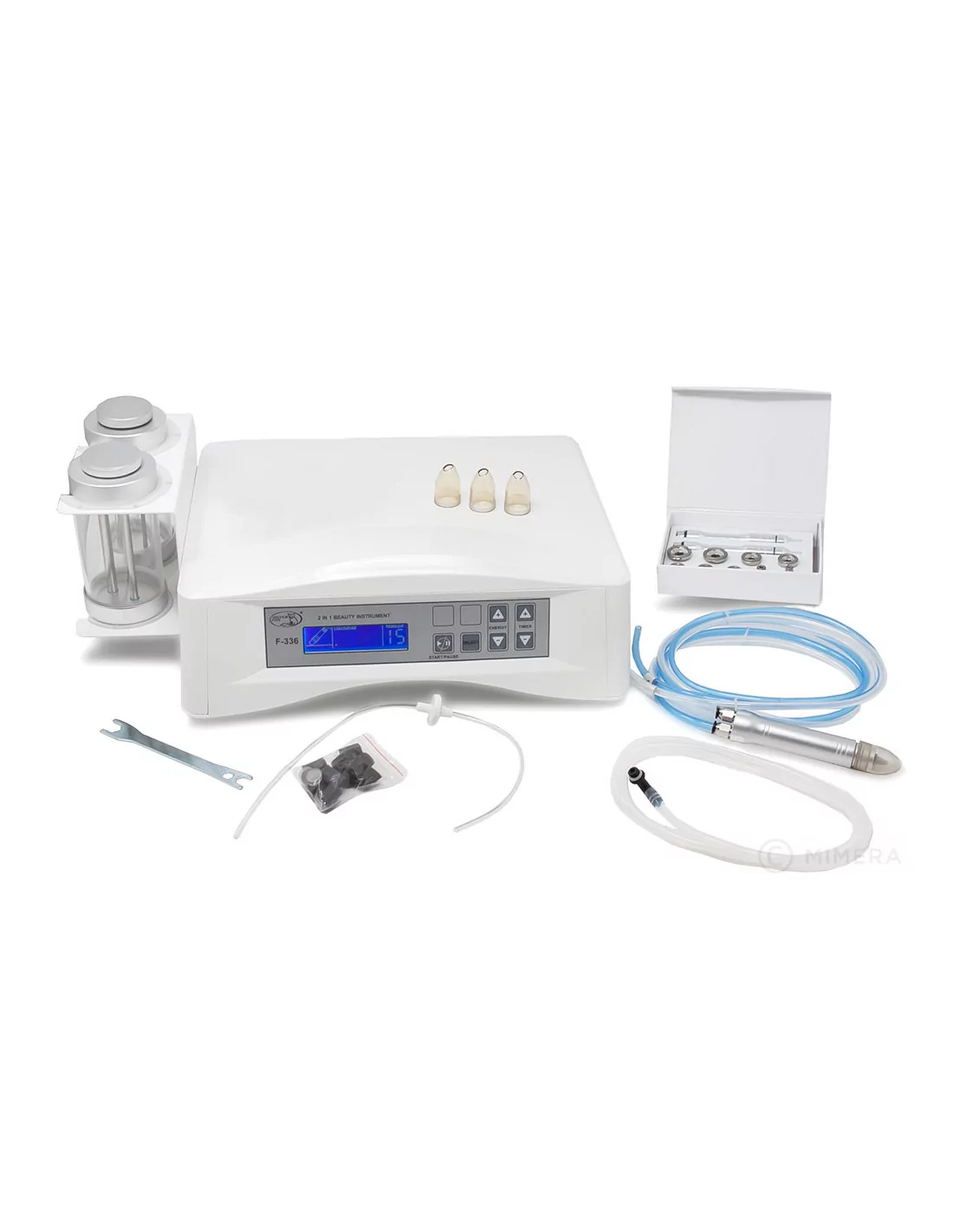 Das multifunktionale kosmetische Gerät F-336 ist eine Kombination aus mikrokristalliner Dermabrasion und Diamant-Mikrodermabrasion, zwei Haupttechnologien in einem Gerät.