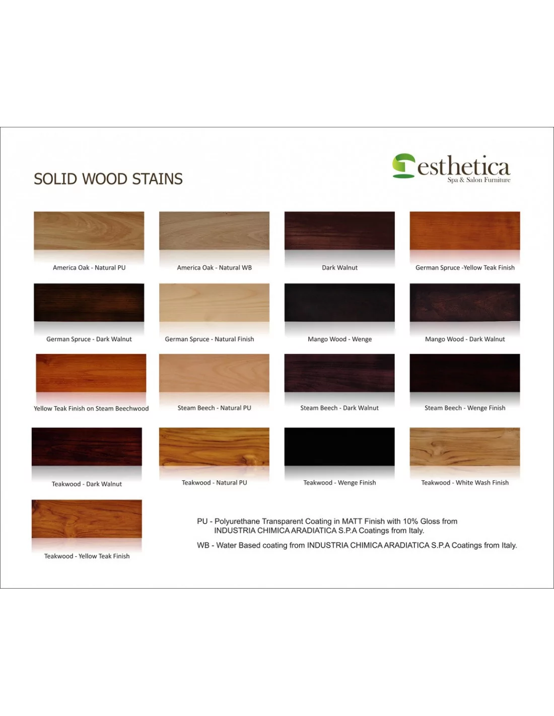 Die Länge und Breite dieses Massagetisches kann nach Kundenwunsch angepasst und nach Maß angefertigt werden. Ebenso kann die Farbe der Holzlasur nach Wahl des Kunden sein: