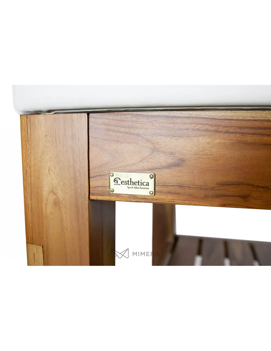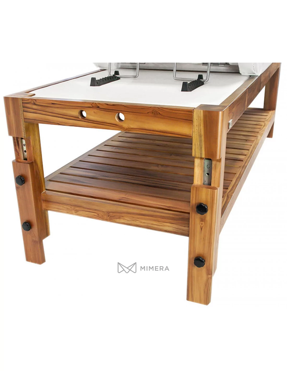 Der Massagetisch BLISS besteht aus massivem Teakholz.