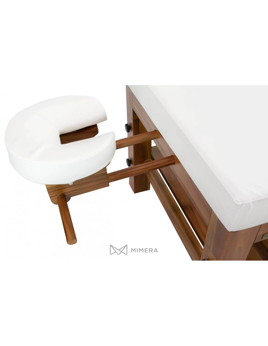 Zu diesem Massagetisch wird eine abnehmbare Kopfstütze aus Massivholz geliefert. Die Länge der Gesichtsstütze beträgt 30 cm.