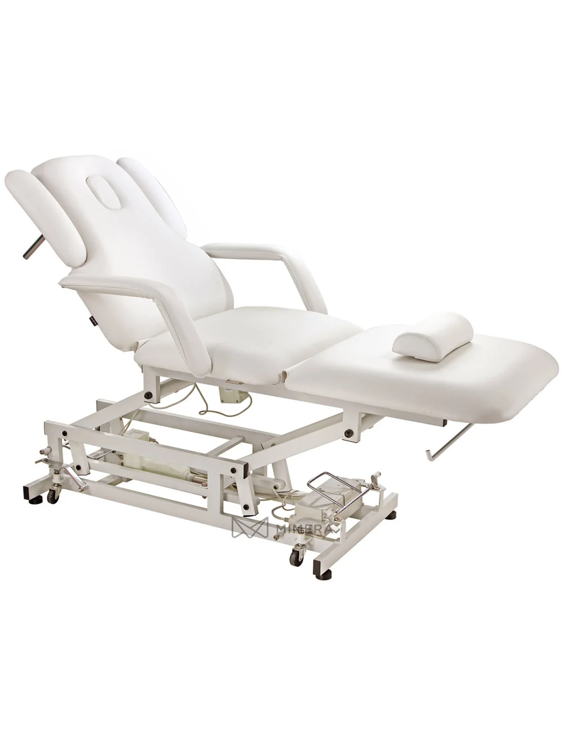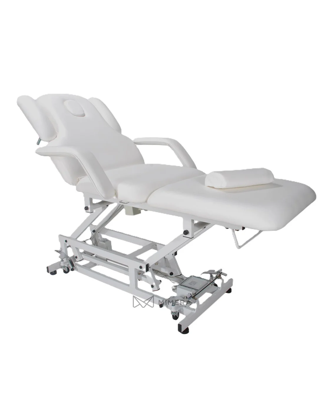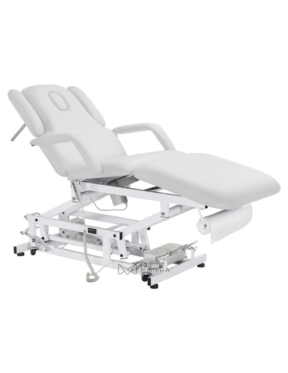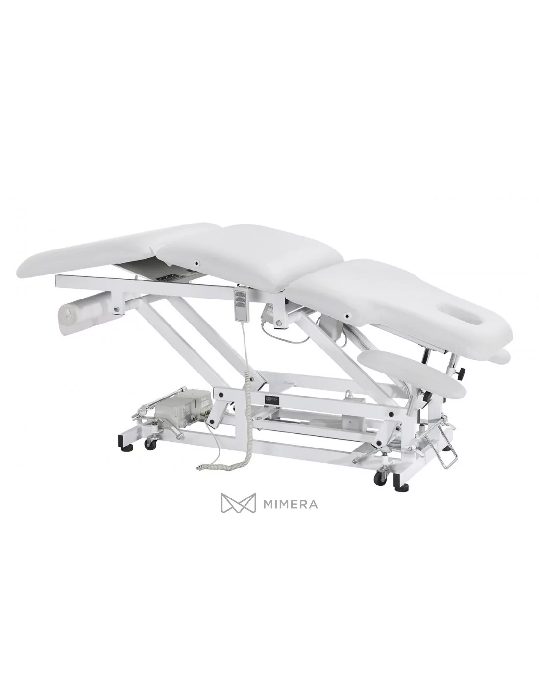 Eine bequeme elektrische Physiotherapie-Liege, universell einsetzbar, eignet sich auch und Kosmetikliege. 3 leistungsstarke Motoren  steuern die Höhe, Rückenlehne und Neigung des Mittelteiles - Sitz und Fussteil. Die elektrische Steuerung, die durch eine Handfernbedienung erfolgt, ist im Lieferumfang enthaltenen. Die Kunden schätzen die geringe Höhe der Liege bei der Aufsetzen und die ultra-bequeme PU-Polsterung, die leicht zu reinigen ist. Der Sitz zeichnet sich durch die maximal mögliche Höhe aus. Der Metallrahmen mit Rollen erleichtert das Verschieben im Raum.