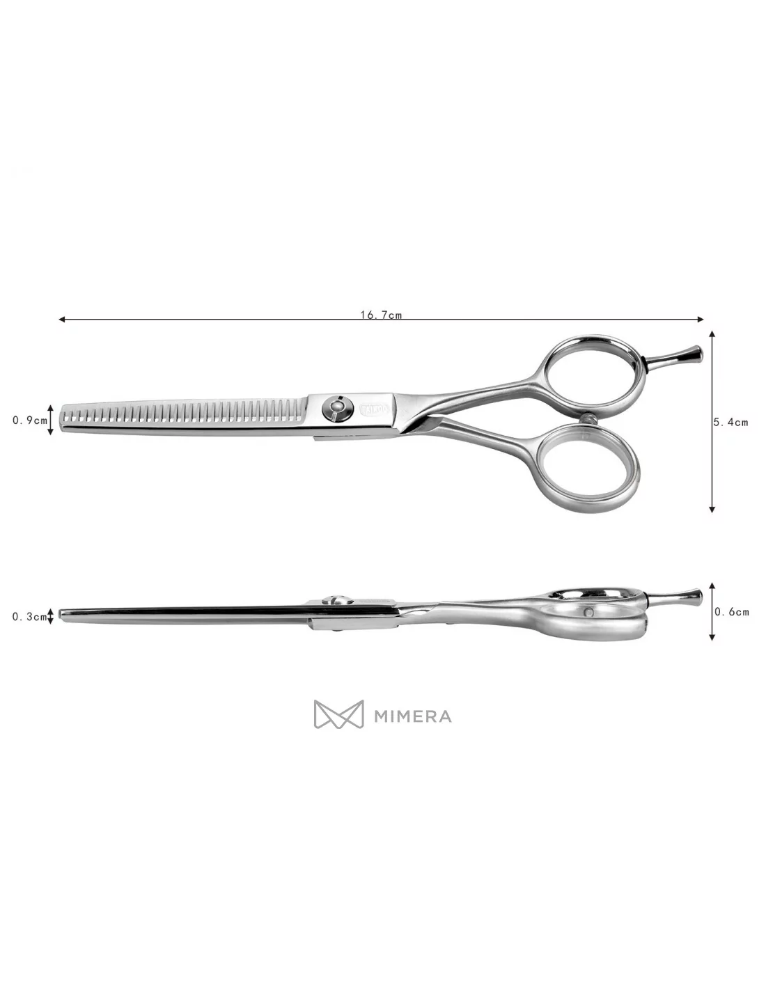 Diese klassische Modellierschere ist ein optimales Werkzeug für den professionellen Friseur. Durch das Schneideblatt lassen sich die Haare einfach ausdünnen.