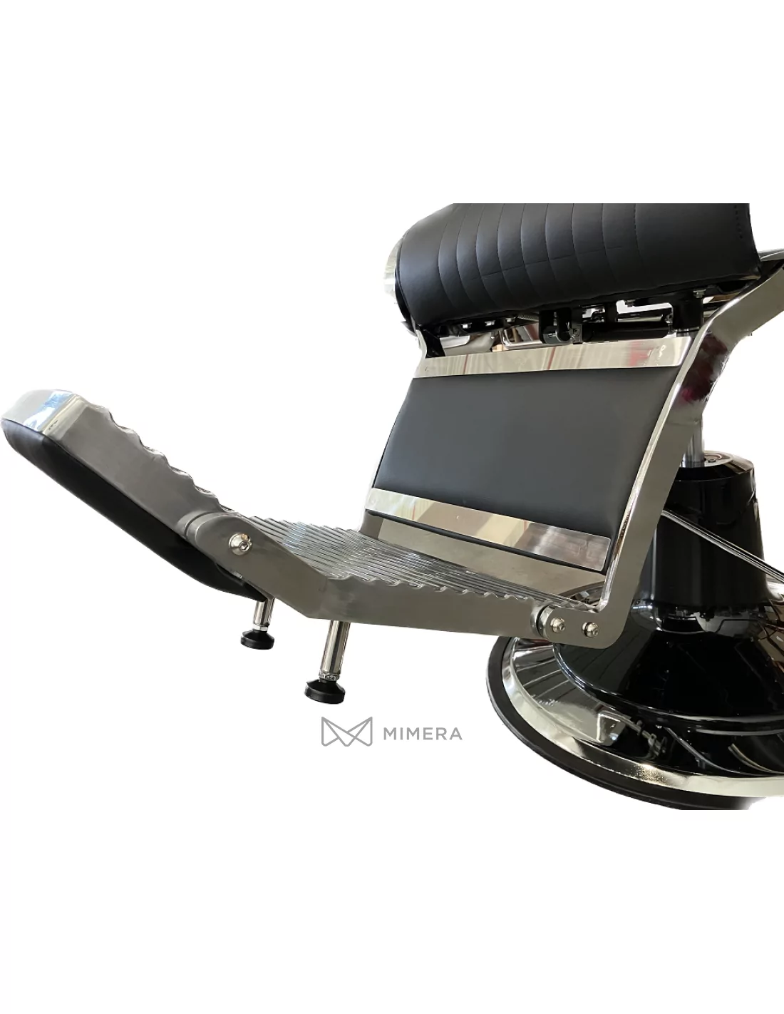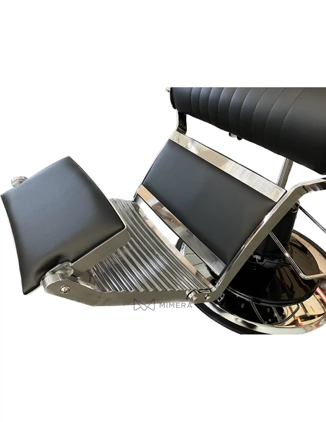 Der elegante Stuhl ist mit einem soliden Stahlrahmen und eine stabile Basis für den harten Einsatz ausgestattet. Die Höhe des Stuhls wird durch eine Hydraulikpumpe gesteuert. Die Rückenlehne des Stuhls lässt sich dank des verchromten Hebels an der rechten Seite des Sitzes leicht umklappen. Der Stuhl hat auch eine höhenverstellbare und abnehmbare Kopfstütze, die mit einem Metallknopf an der Rückseite der Rückenlehne eingestellt werden kann. Der Stuhl verfügt außerdem über eine Fußstütze mit Stützbeinen sowie eine schwenkbare Fußstütze, die im Liegen als Wadenstütze dient und Ihrem Kunden einen noch besseren Komfort bietet. Die schwenkbare Fußstütze und die Armlehnen sind ebenfalls gepolstert, um den Komfort zu erhöhen.