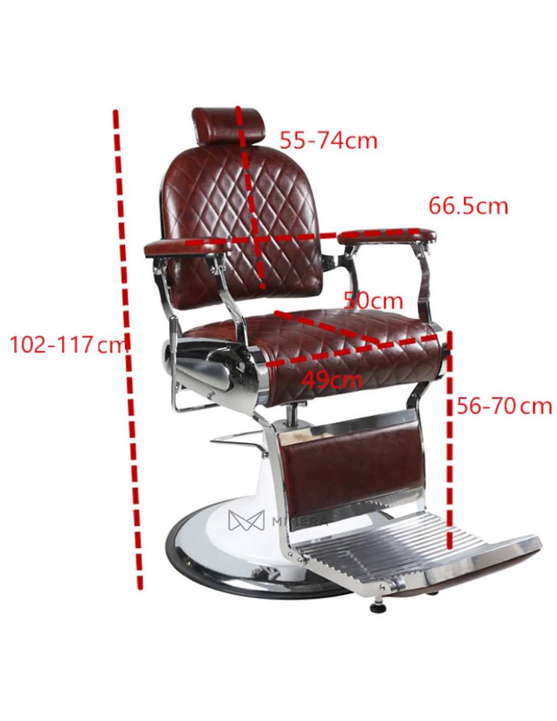 Der Retro-Barberstuhl ELEGANCE bietet jedem Kunden maximalen Komfort dank der schön gesteppten, bequemen Polsterung, die leicht zu pflegen und zu reinigen ist. Die einzigartige Farbe und die Nähte des Stuhls tragen ebenfalls zu einem einzigartigen Erlebnis bei, bei dem sich jeder Kunde wie ein Gentleman fühlt.