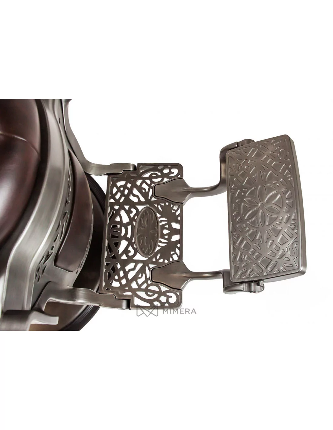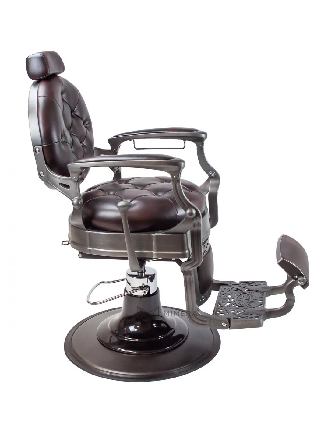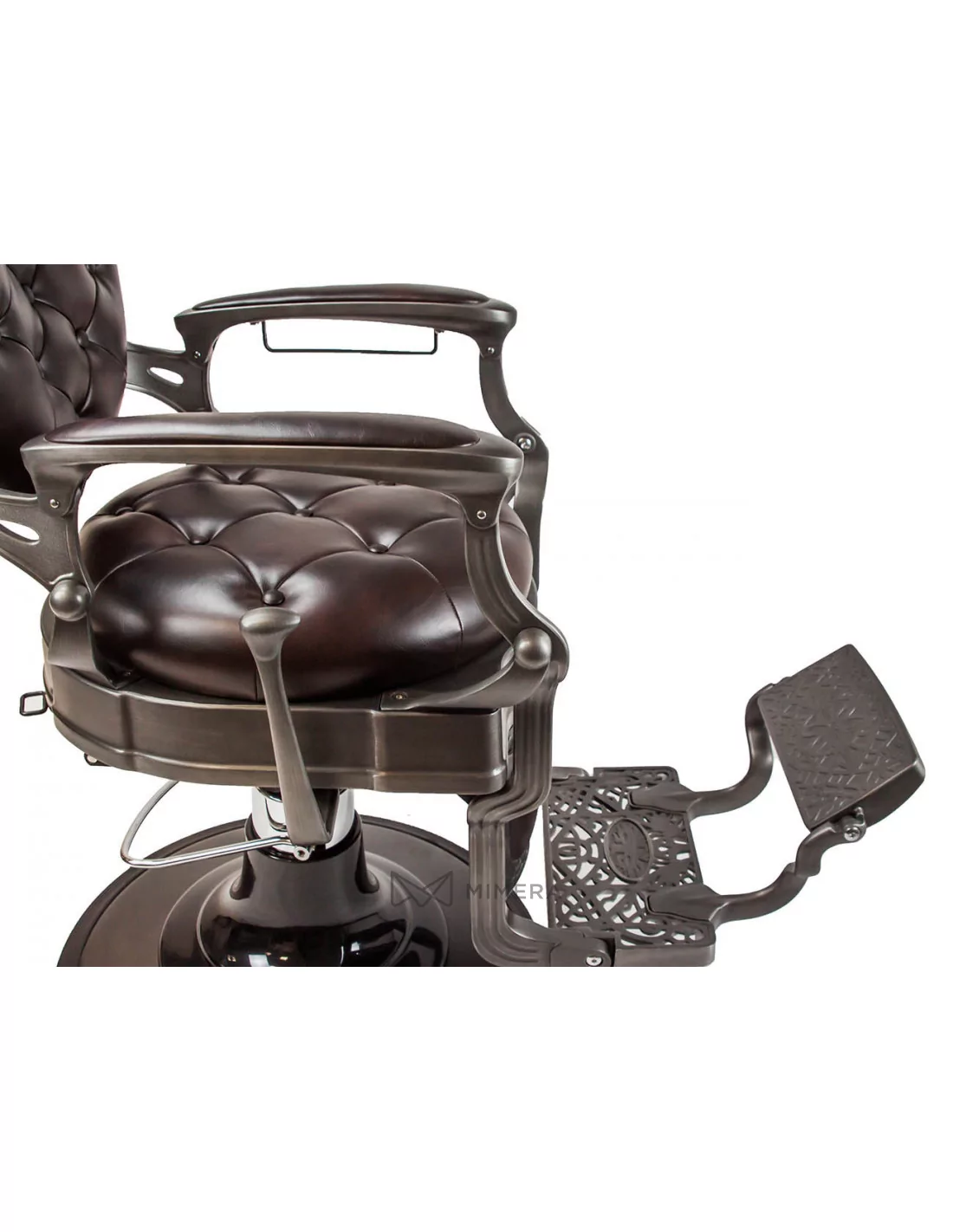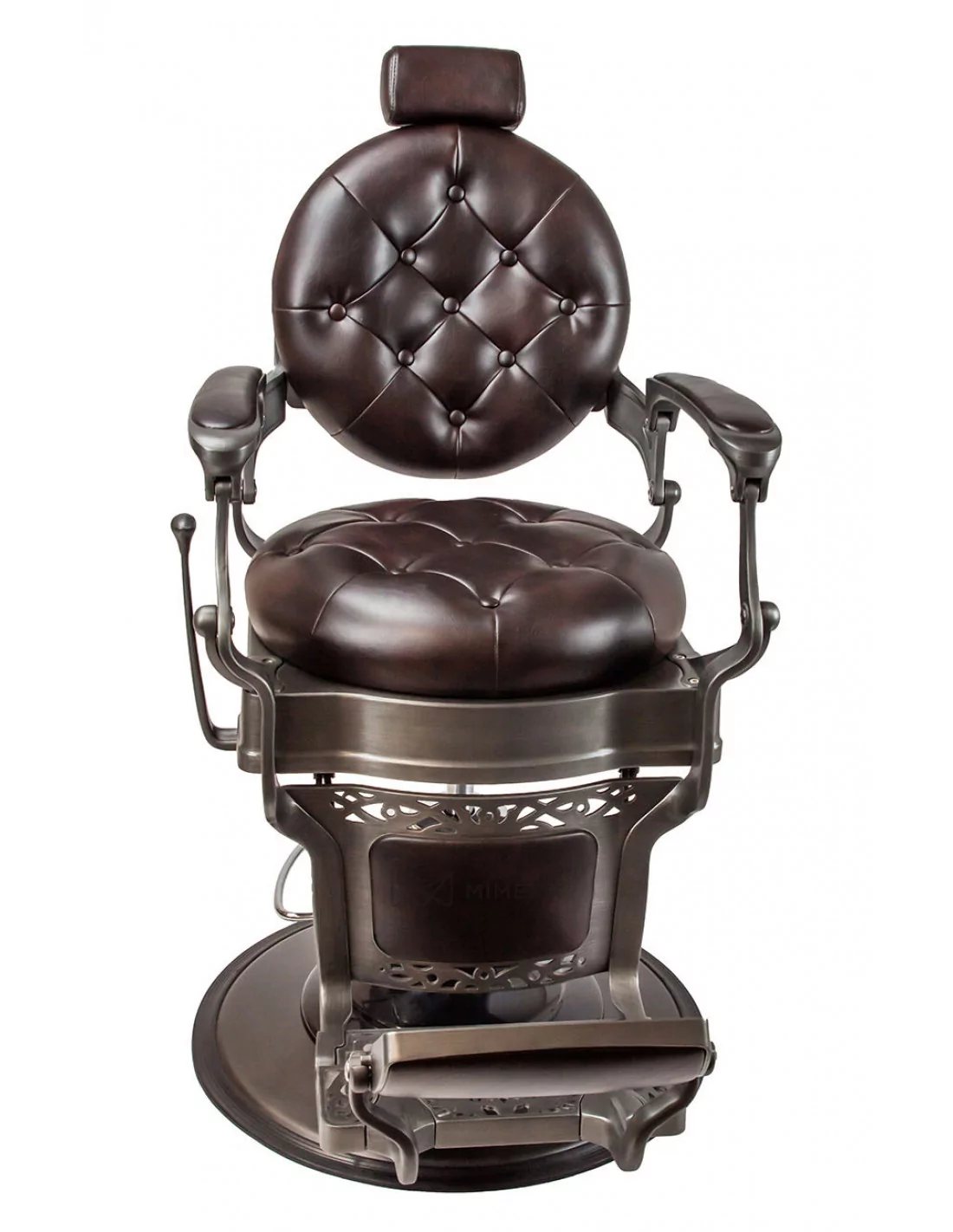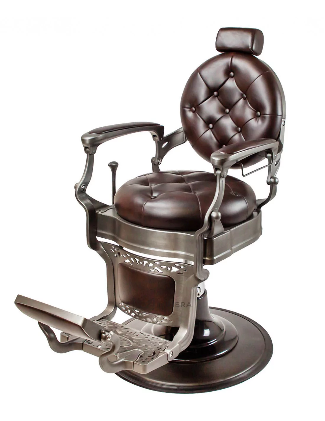 Der Barberstuhl RETRO MONET ist ein Meisterwerk. Sein massiver Edelstahlkorpus wird von einer großen runden Basis getragen, die ihn extrem stabil und gut ausbalanciert macht.