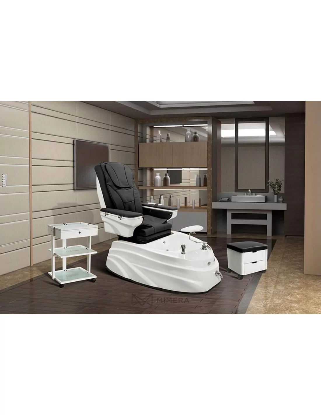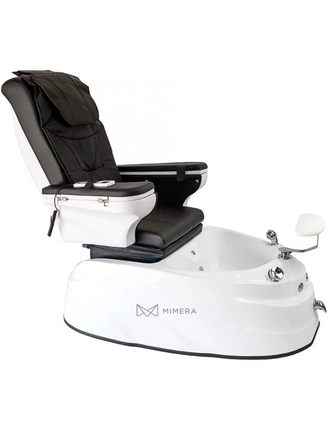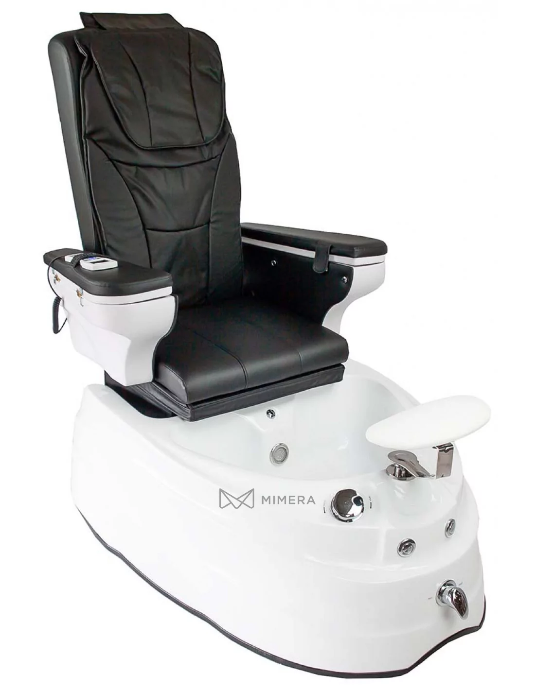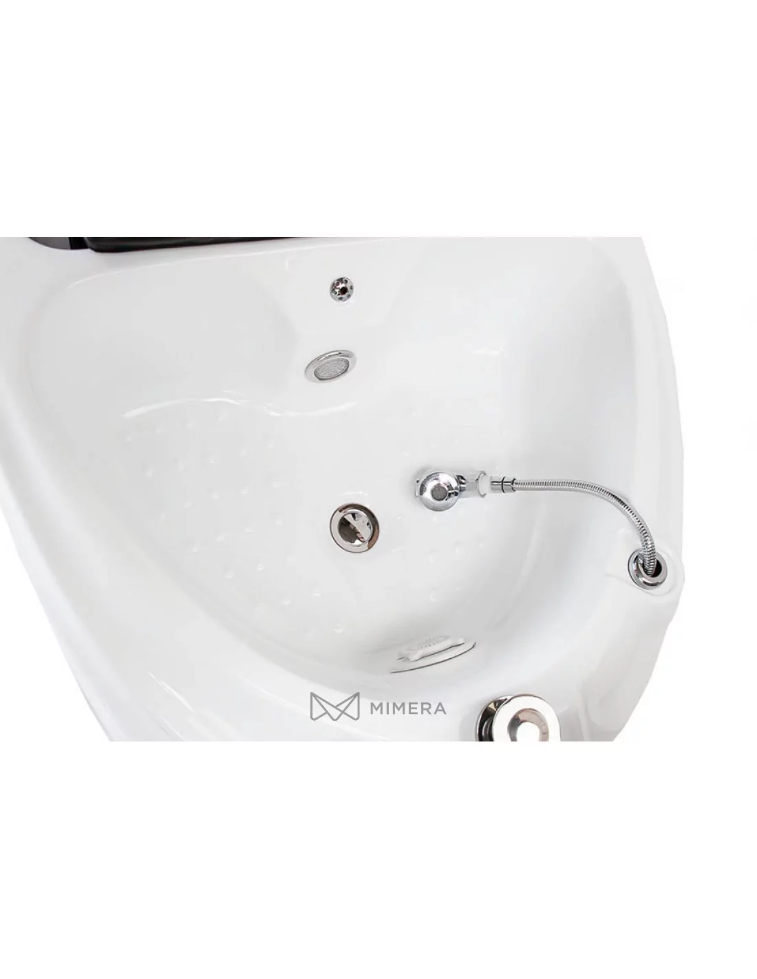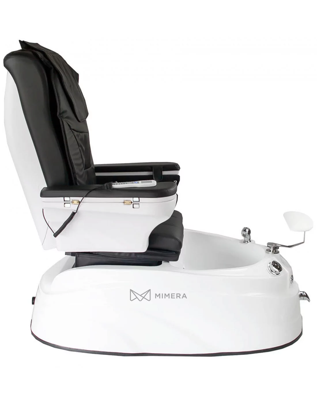 Auch der Komfort des Therapeuten wurde nicht vernachlässigt. Die Beinstütze lässt sich verstellen und sorgt für die richtige Arbeitsposition. Mit der herausziehbaren Dusche können Sie die Füße des Kunden abspülen oder die Wanne nach der Behandlung reinigen. Außerdem verfügt der Stuhl über eine elektrische Abflusspumpe, die das Wasser innerhalb von zwei Minuten abpumpt.