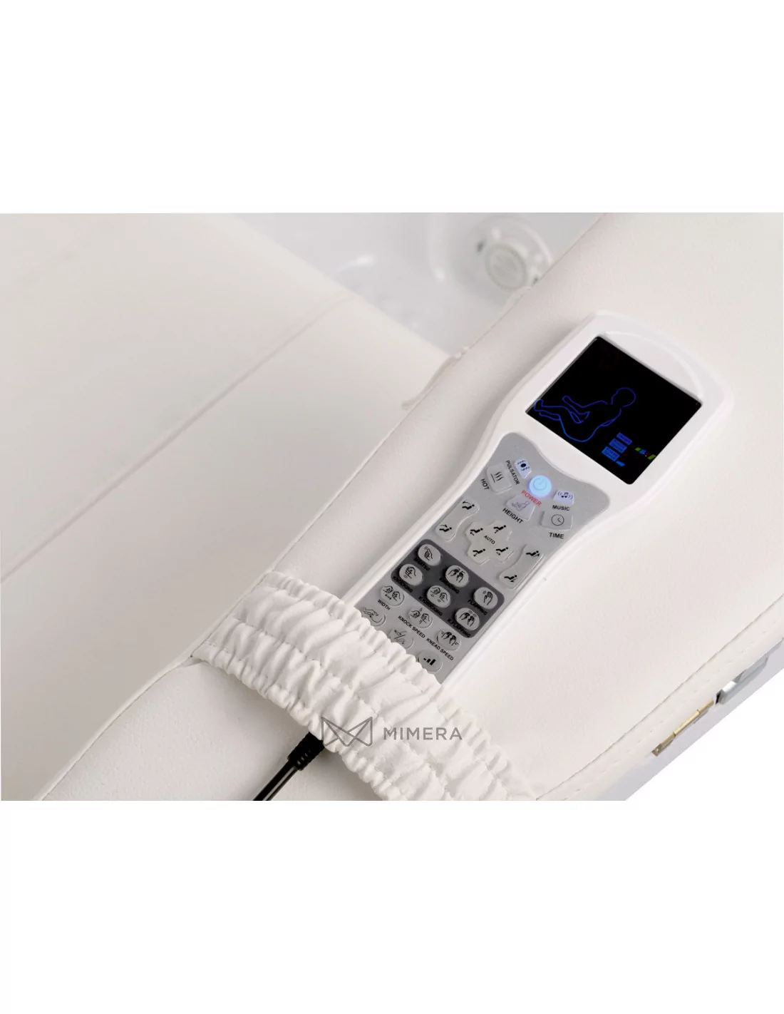 Auch der Komfort des Therapeuten wurde nicht vernachlässigt. Die Beinstütze lässt sich in der Höhe verstellen, um eine ergonomische Arbeitsposition zu gewährleisten. Mit der herausziehbaren Dusche können Sie die Füße des Kunden abspülen oder die Wanne nach der Behandlung reinigen. Außerdem verfügt der Stuhl über eine elektrische Abflusspumpe, die das Wasser innerhalb von zwei Minuten abpumpt.