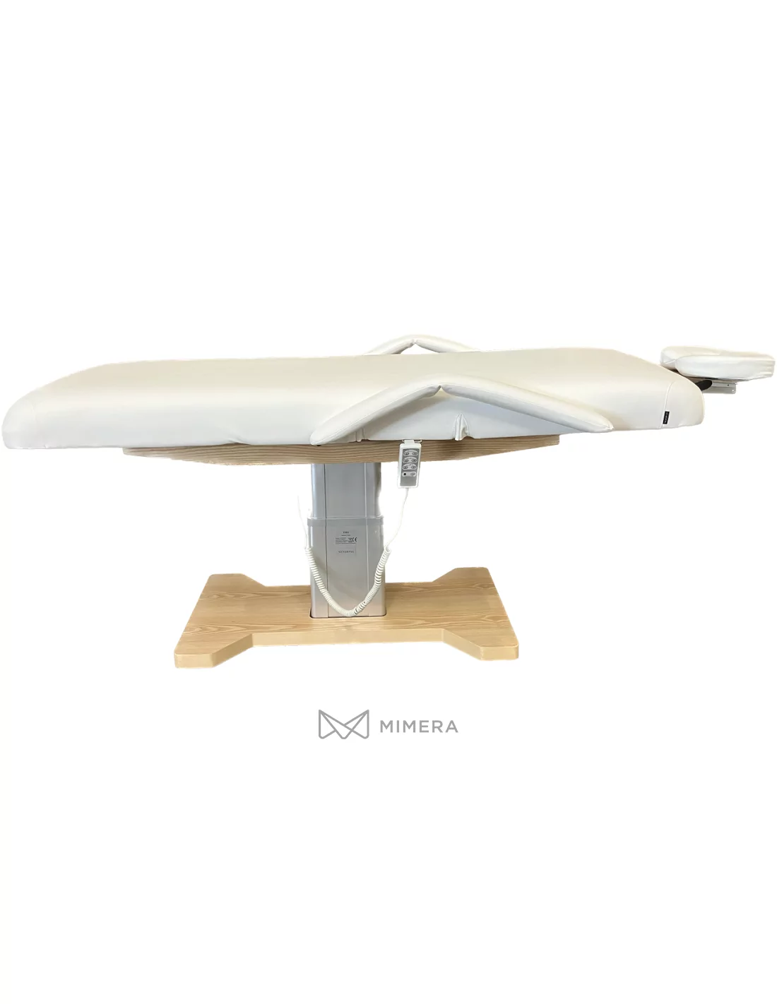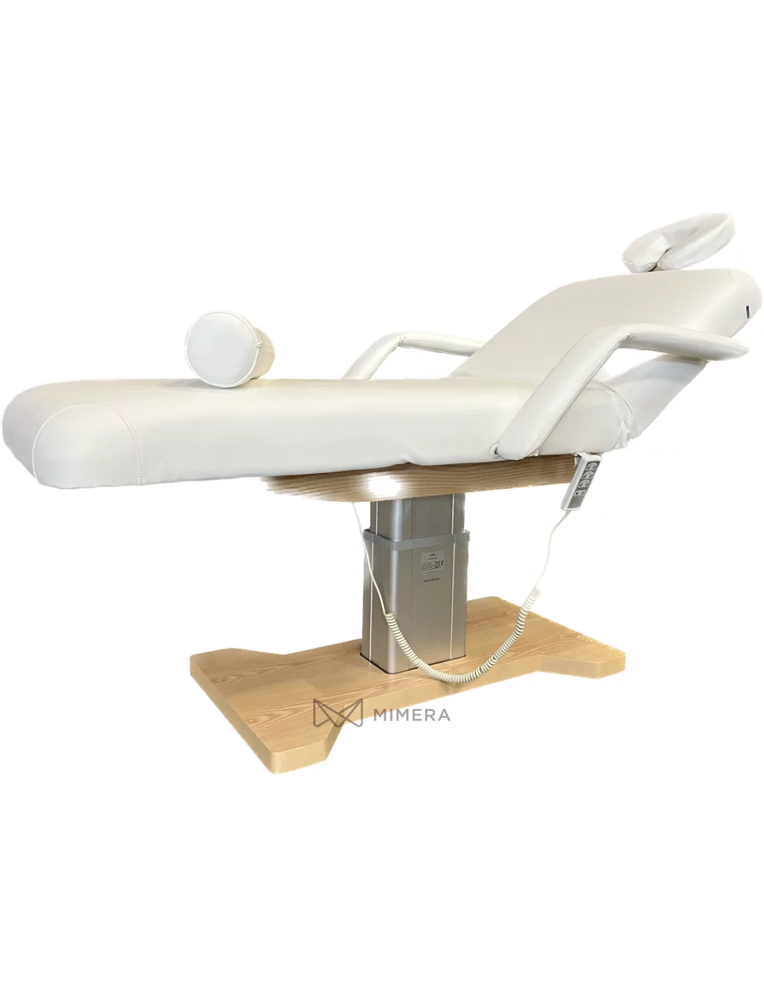 Sehr komfortable und vielseitige SPA-Wellnessliege LUBI E3 hat ein modernes Design, das sie zu einer sehr guten Wahl für Wellness-Zentren jeder Größe macht. Sie bietet eine ausgezeichnete Stabilität und ein elektrisches System mit 3 Motoren, das die Einstellung der Liegehöhe, der Neigung der Rückenlehne und des Knielifts ermöglicht. Die Bedienung erfolgt über eine Handfernbedienung, die im Lieferumfang enthalten ist. Die Liege verfügt über eine relativ hohe Höhenverstellung bis zu 88,5 cm.