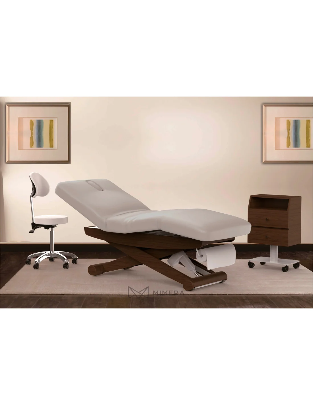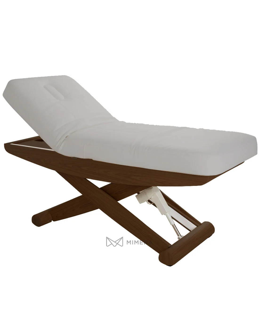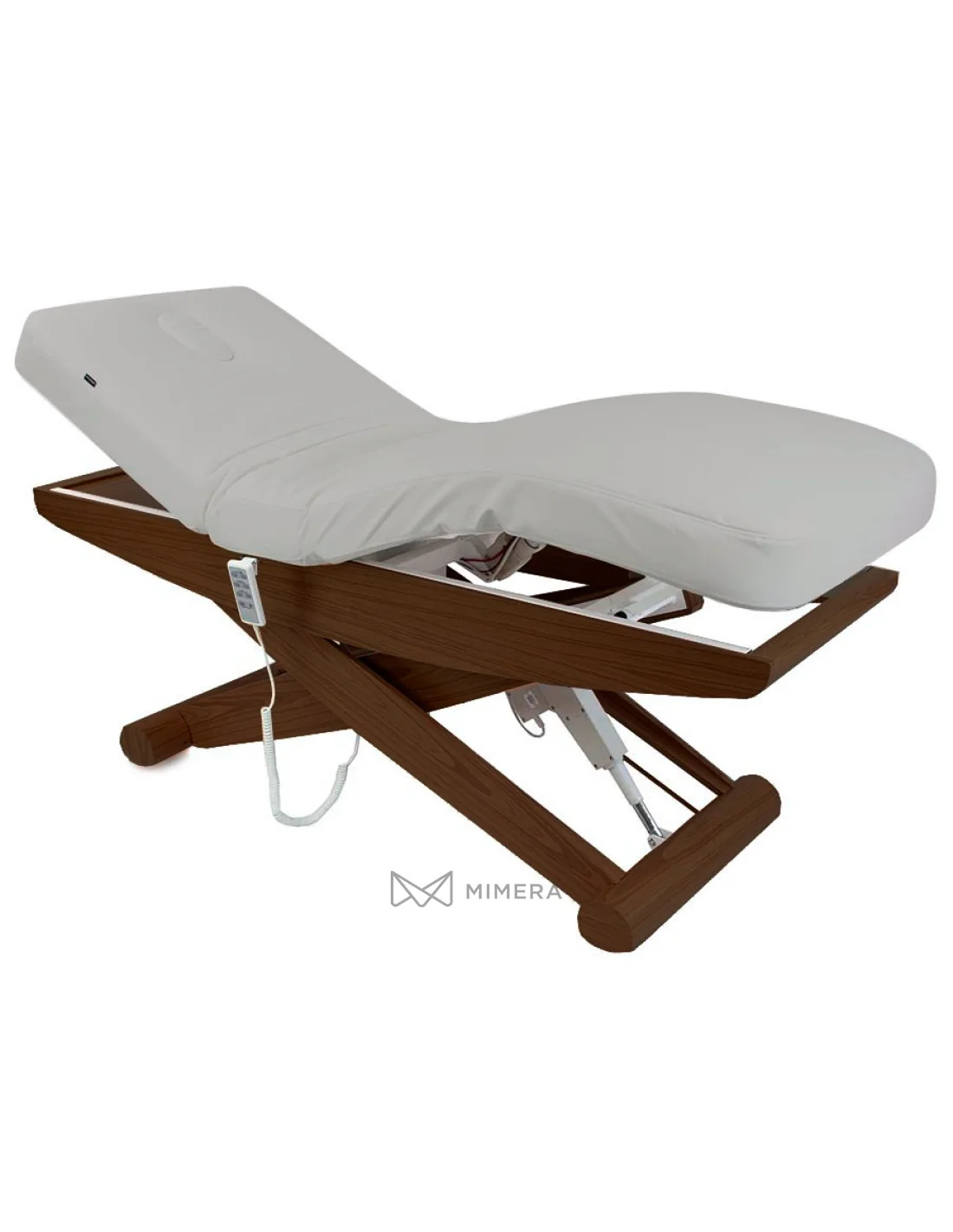 LUNA PLUS E3 mit Heizung ist eine äußerst komfortable Wellnessliege mit einzigartigem Design. Sie ist mit drei Motoren ausgestattet, um die Höhe der Liege, die Neigung der Rückenlehne und die Neigung vom Beinteil des Knielifts zu steuern. Die Bedienung erfolgt über eine Handsteuerung, die im Lieferumfang enthalten ist. Die Liege zeichnet sich durch ihren außergewöhnlichen Höhenverstellbereich aus - von 62 bis 95 cm.