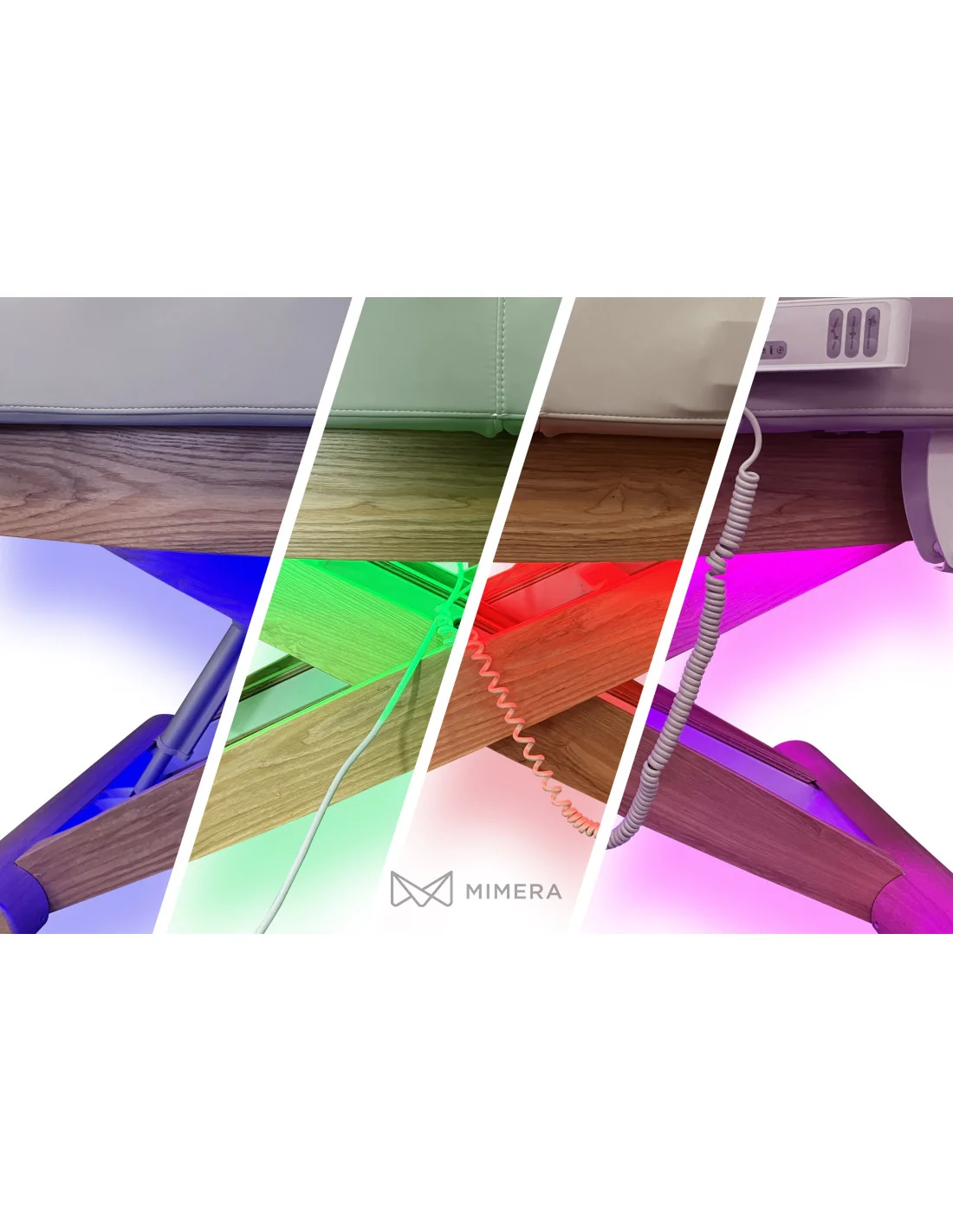 Die LUNA PLUS E3 mit Heizung verfügt über eine eingebaute Heizung, die Ihren Kunden einen noch angenehmeren Verlauf der Behandlung ermöglicht. Zur Verbesserung des visuellen Erlebnisses trägt die Hintergrundbeleuchtung der LED-Streifen bei, deren Farbe und Intensität in sechs Farben und 14 Modi verändert werden kann.