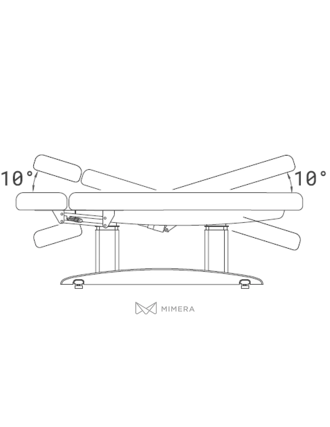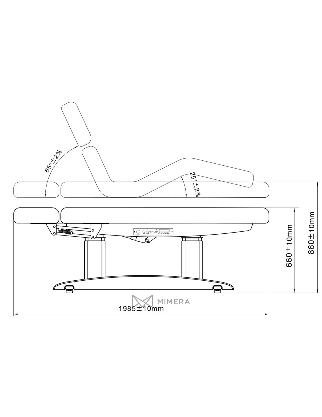 Die Liege verfügt über 4 leise Motoren, die die Höhe der Liege, die Neigung der Rückenlehne, die Fußstützen und die Neigung der gesamten Liege verstellen. Die Besonderheit der Liege besteht darin, dass die Motoren, die sich in den Füßen befinden, unabhängig voneinander verstellt werden können und so die Neigung der gesamten Liege (z.B. Trendelenburg-Position) einstellen.