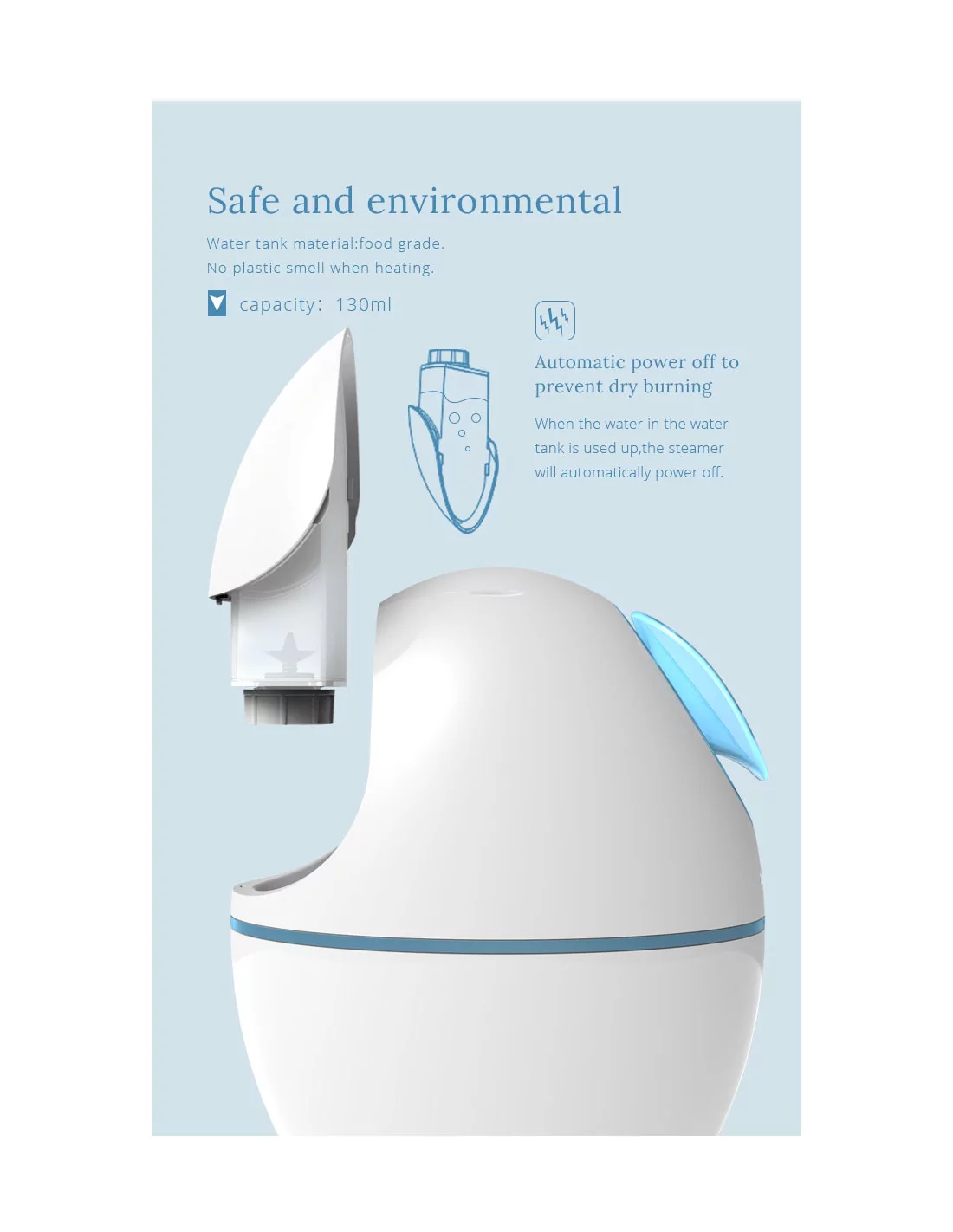 - Sicherer und umweltfreundlicher 130 ml Wasserbehälter