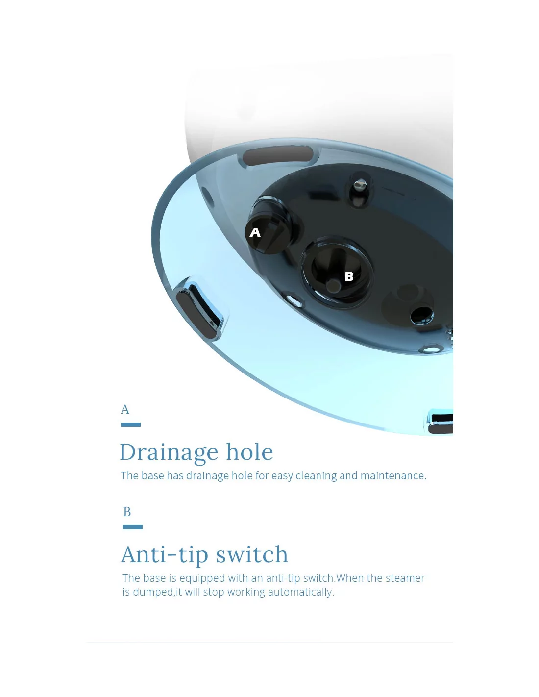 Sicherheitsmerkmale wie die Abschaltautomatik und der automatische Kippschalter verhindern ein Trockenbrennen, wenn der Wassertank aufgebraucht ist, und Unfälle, wenn das Gerät umkippt.